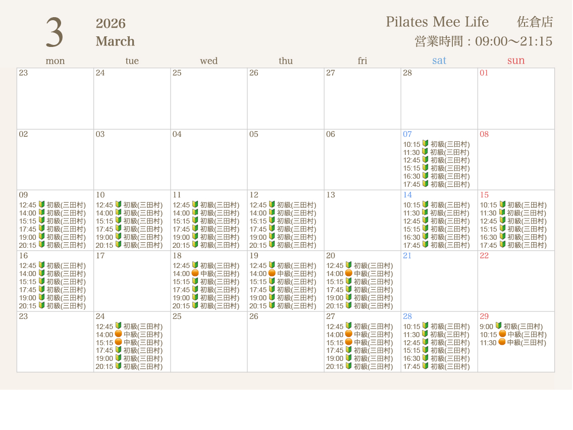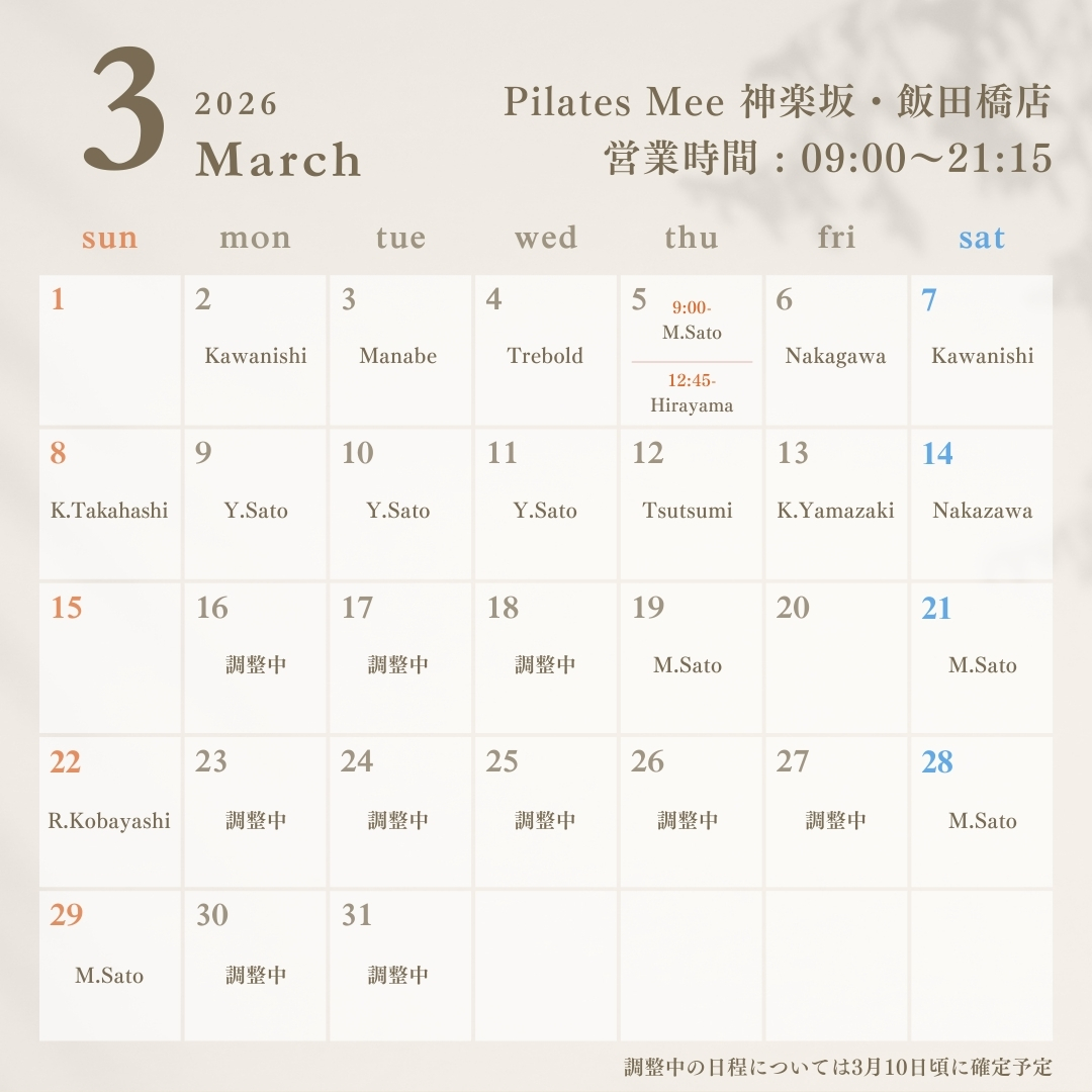 2026年3月の出勤スケジュールを公開しました