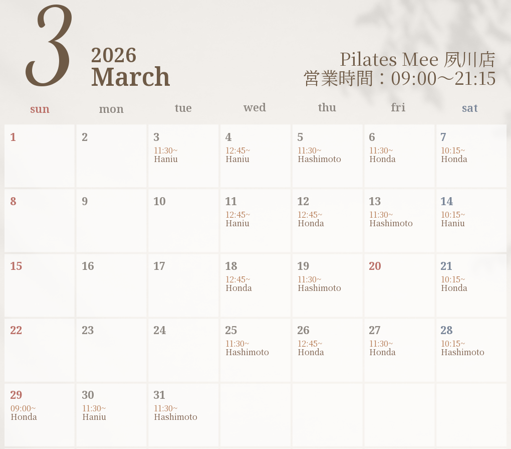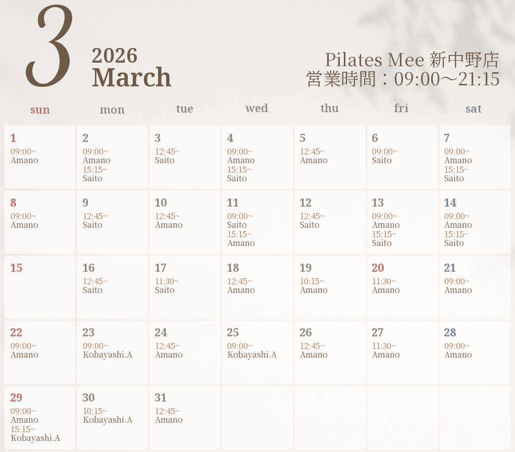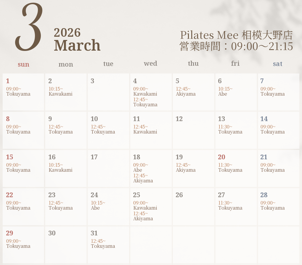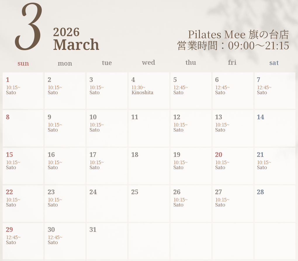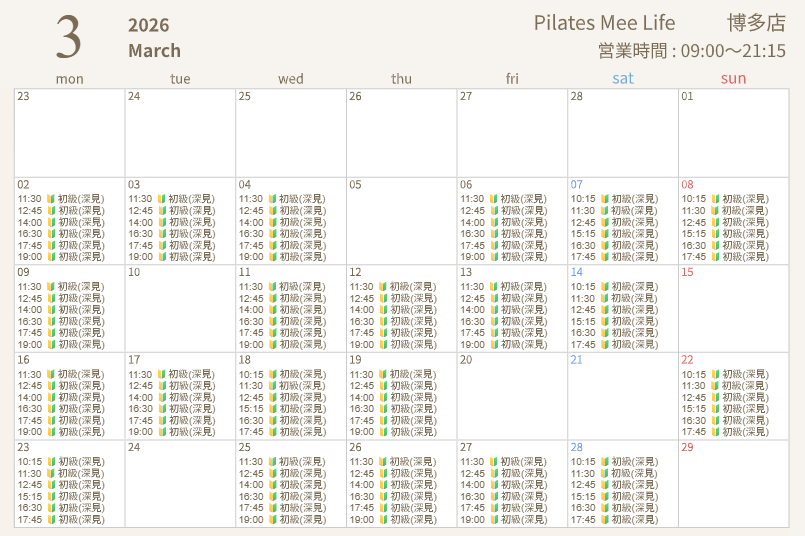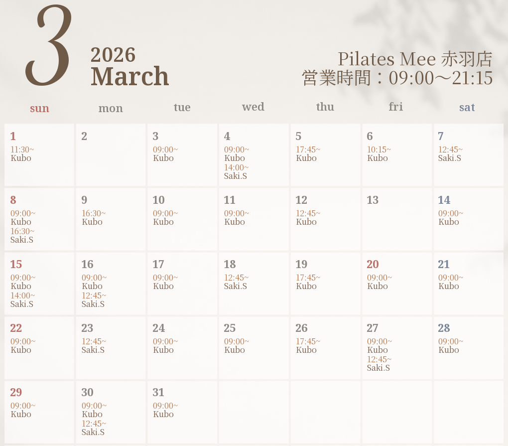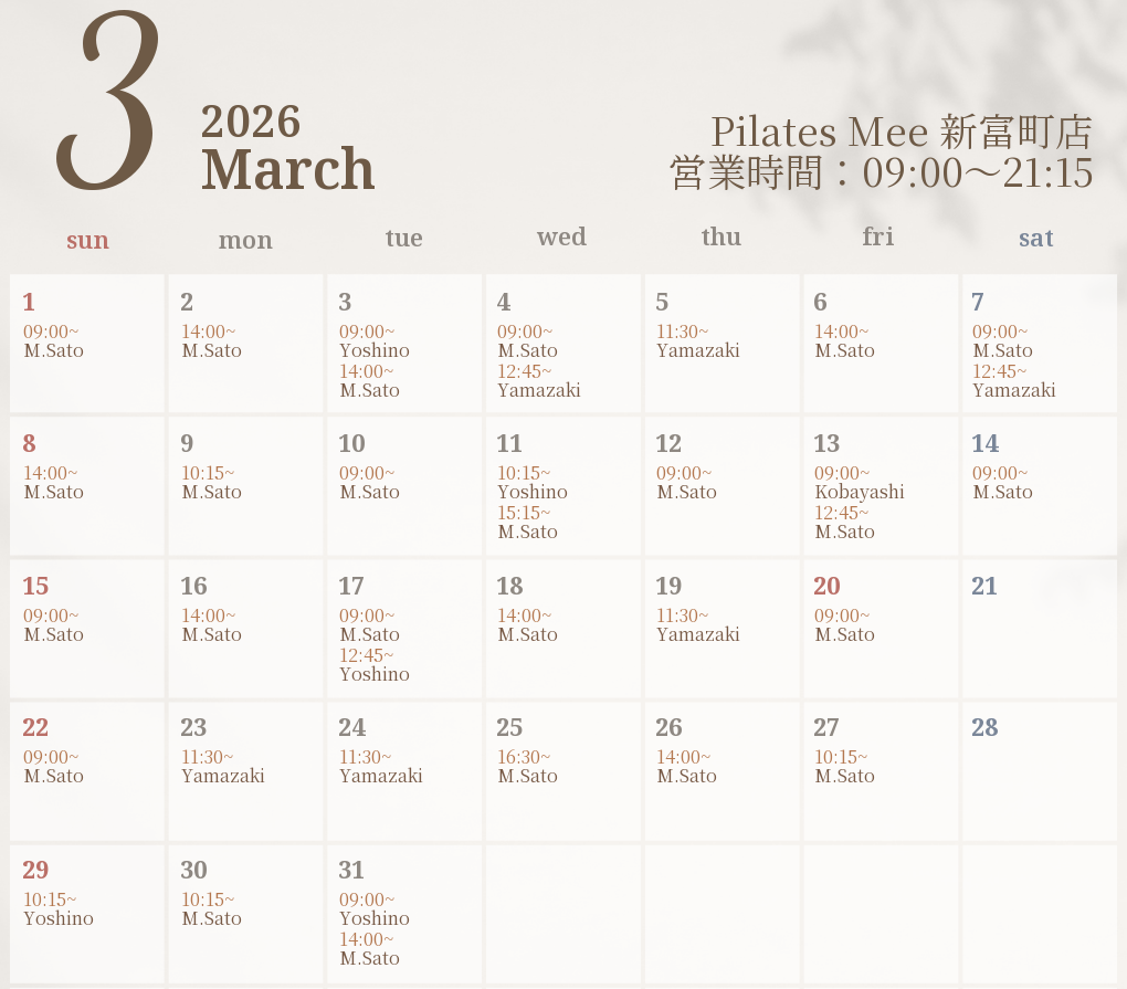 2026年3月の出勤スケジュールを公開しました