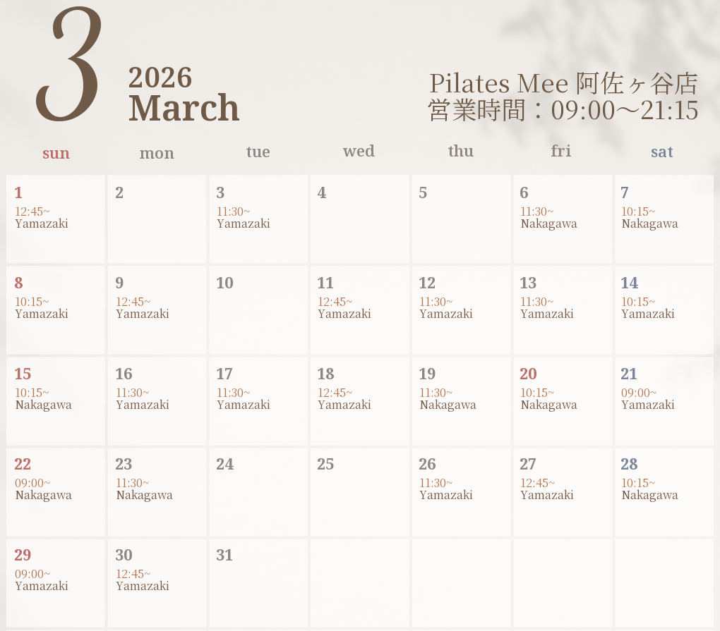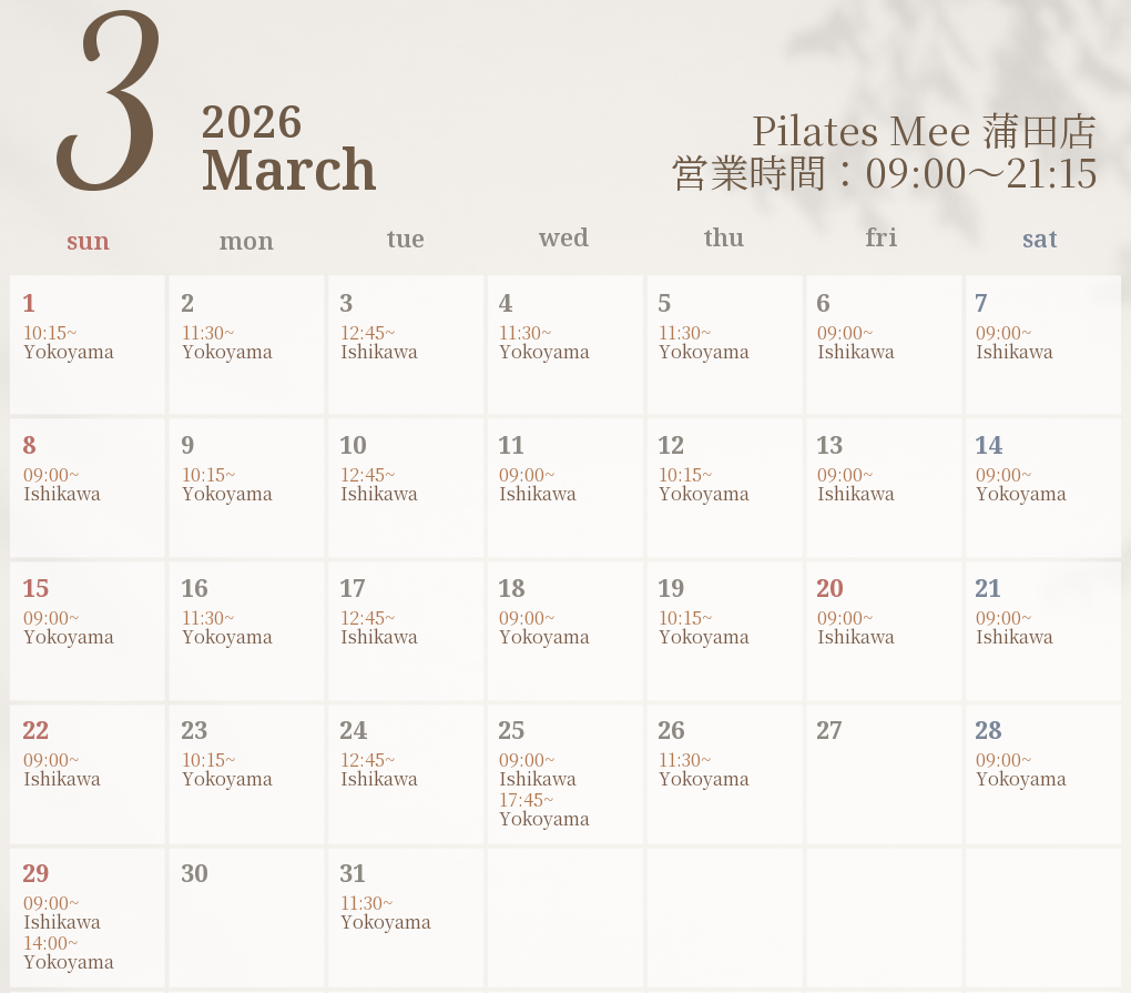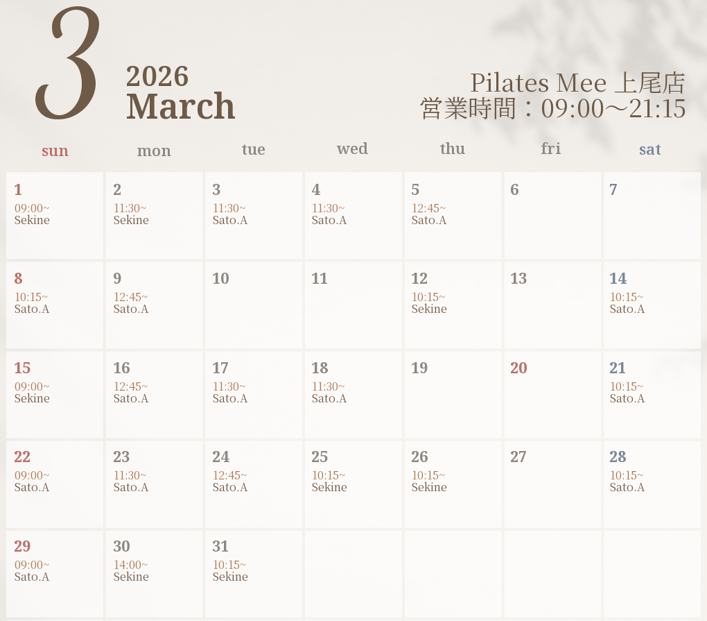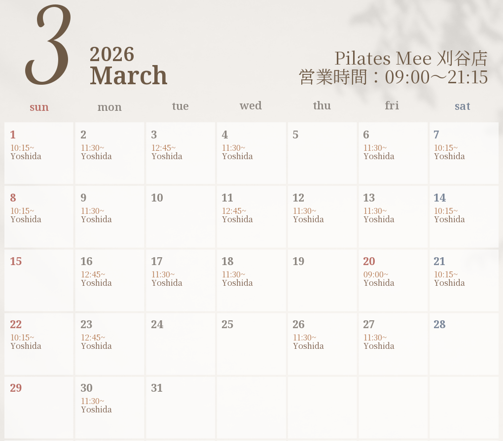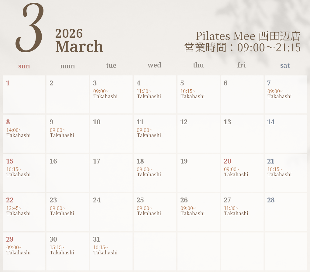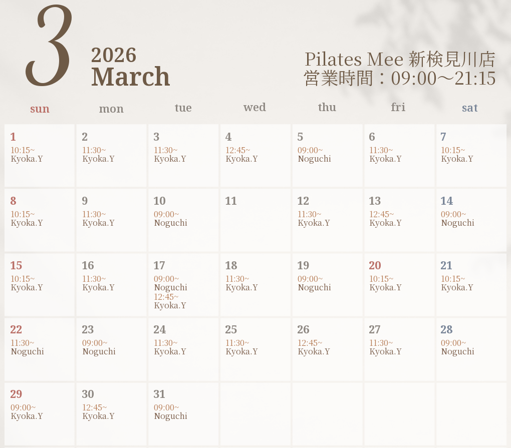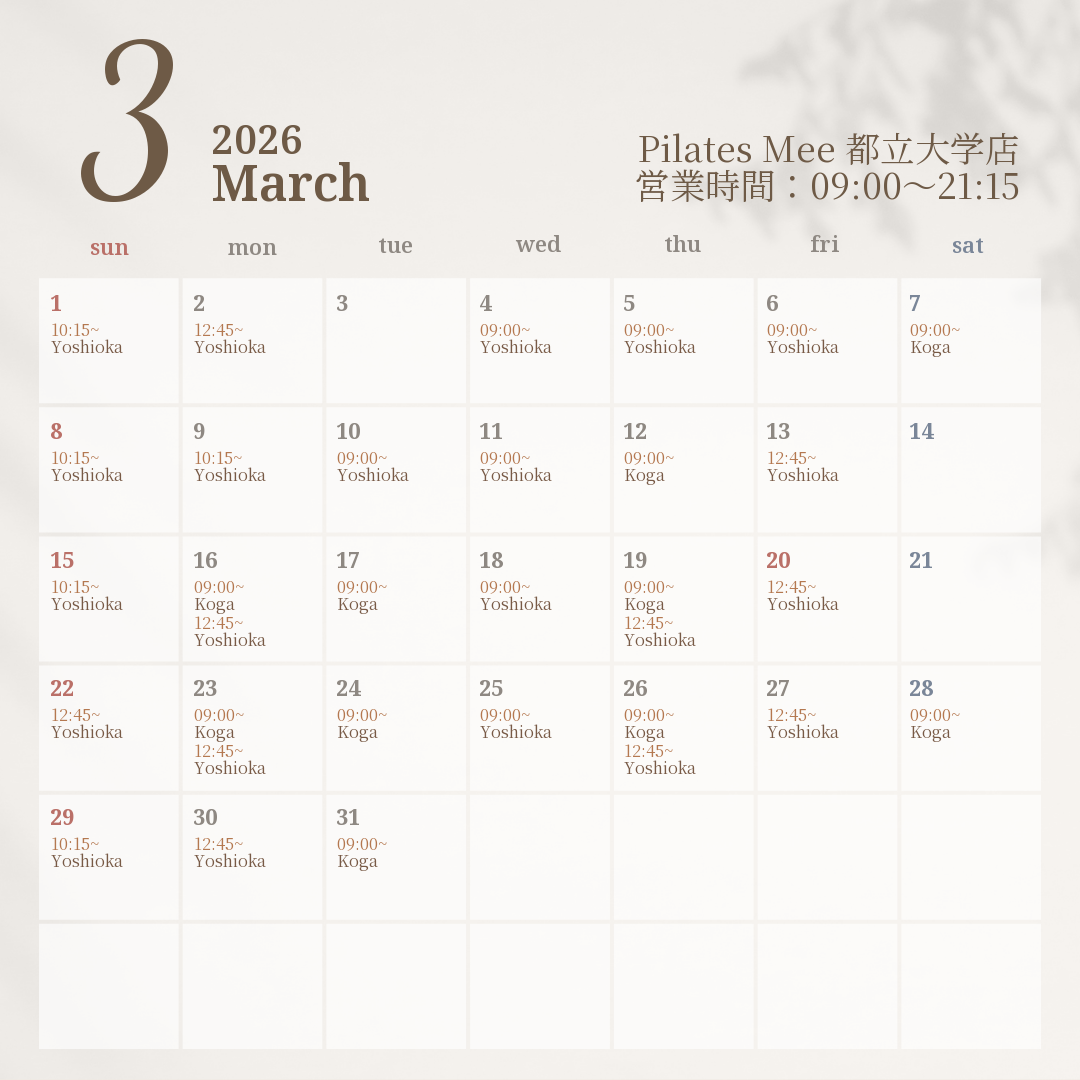 2026年3月の出勤スケジュールを公開しました