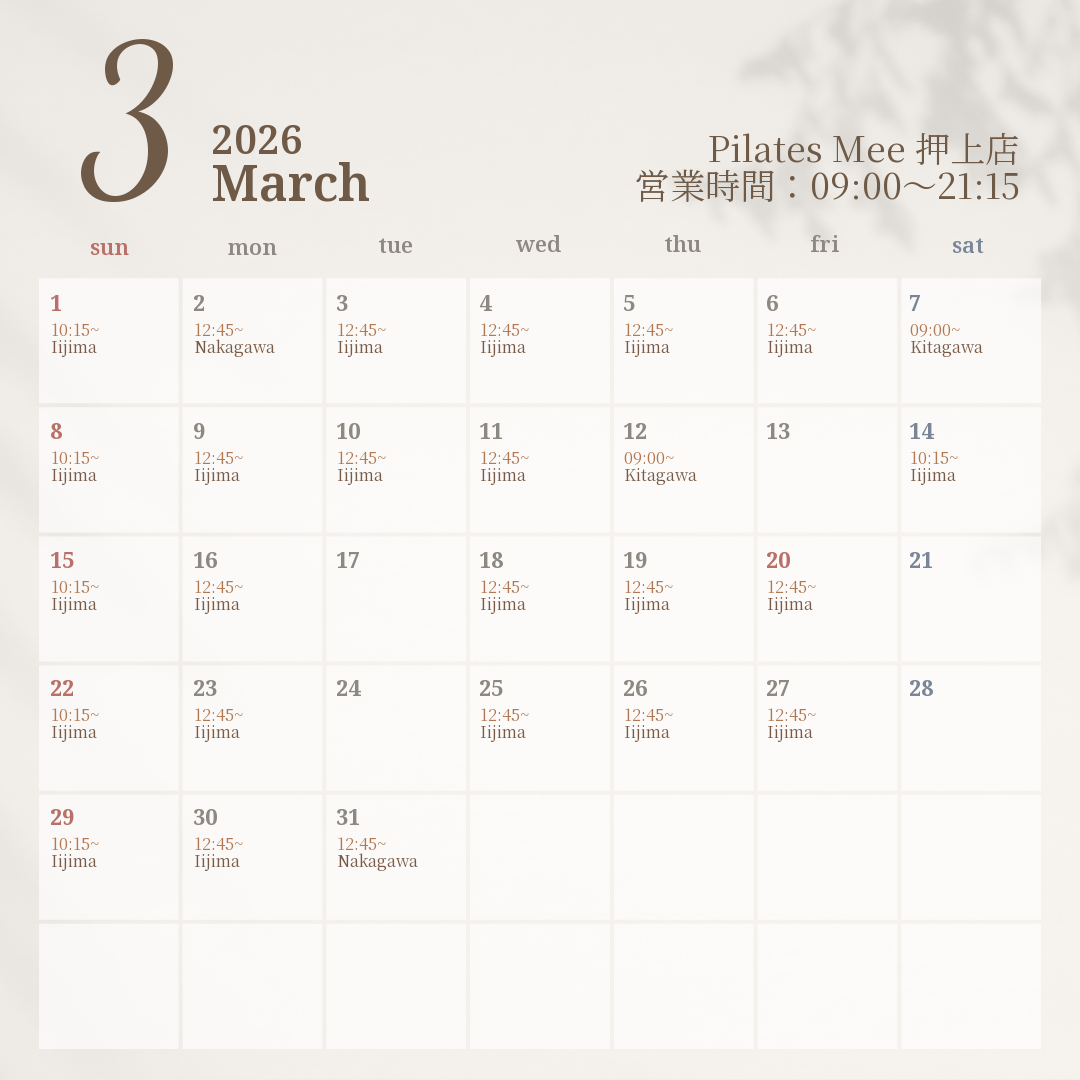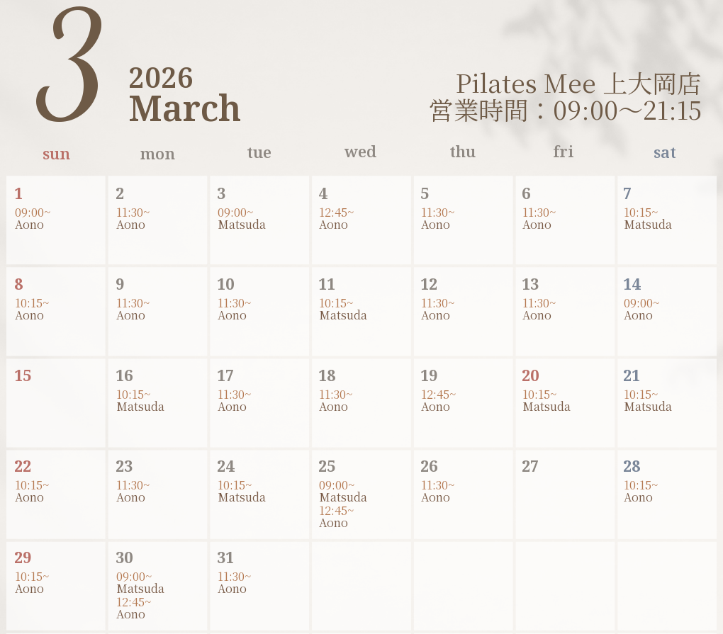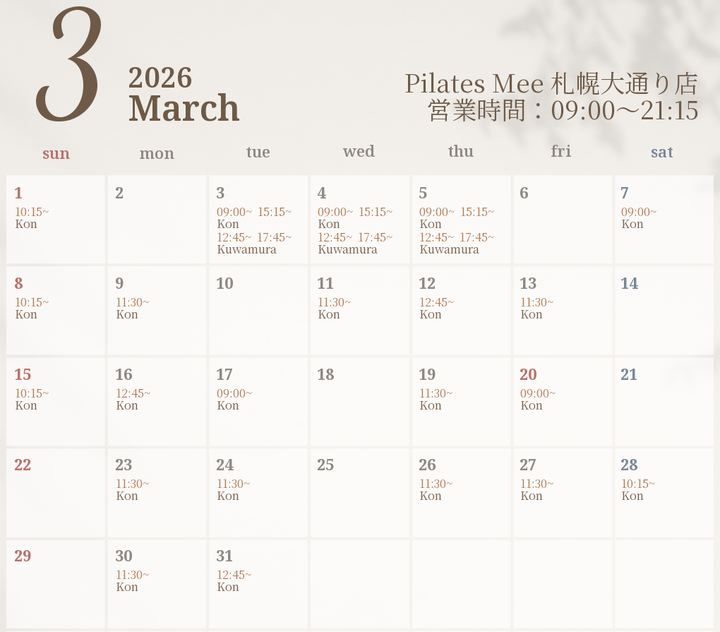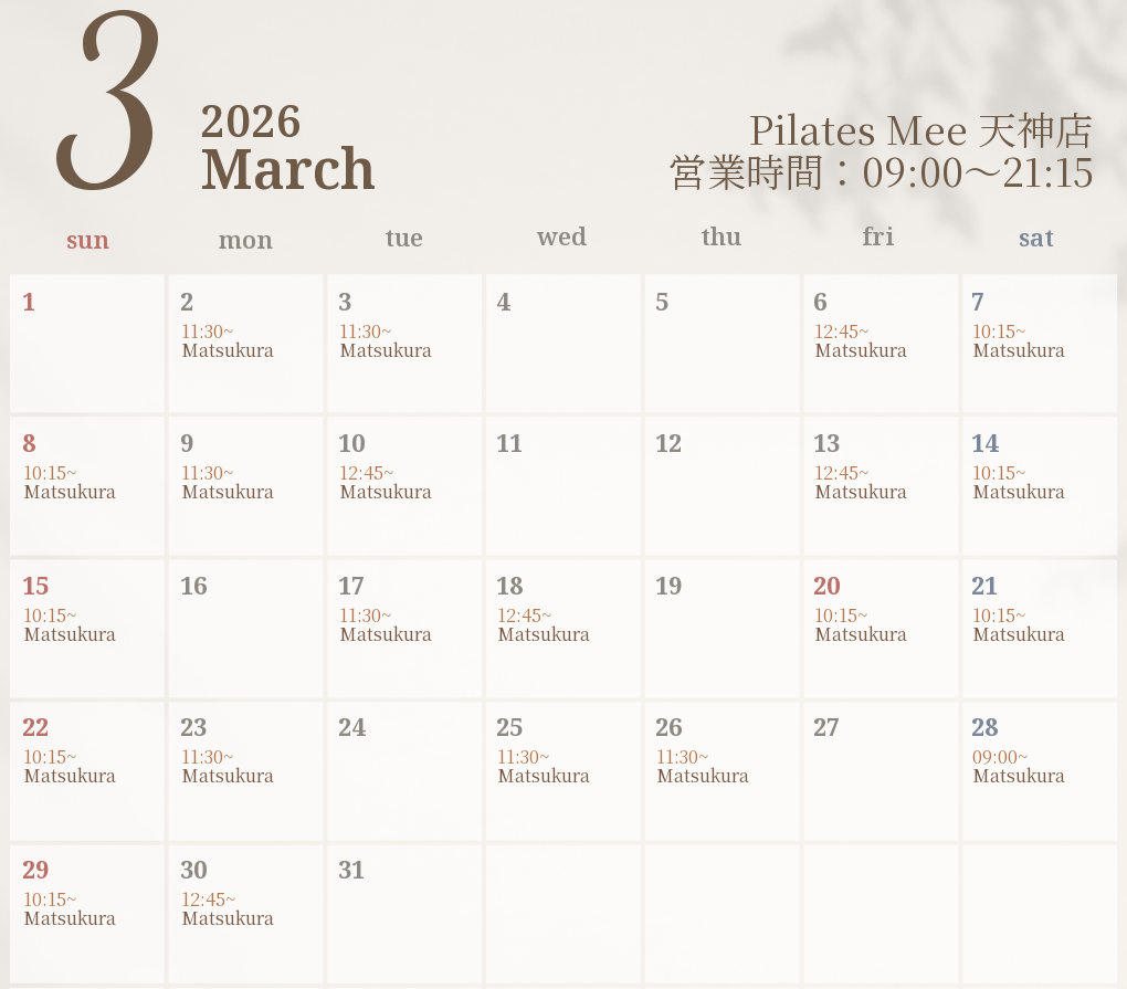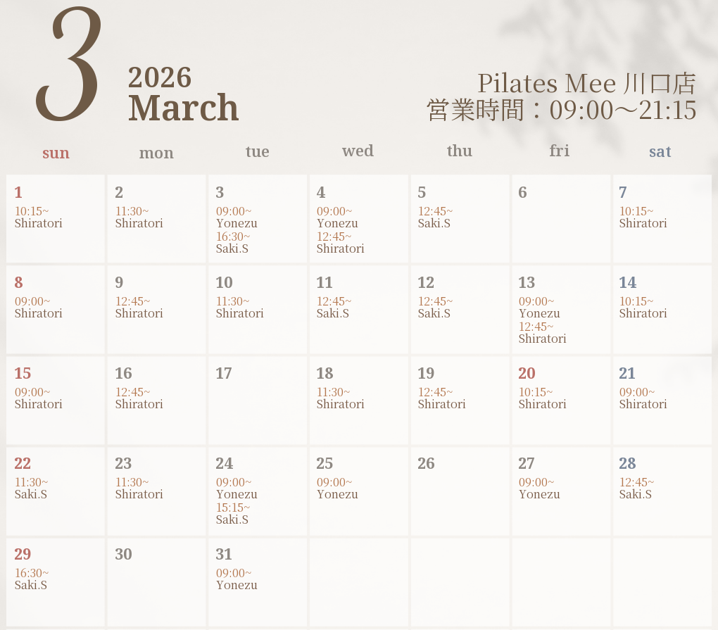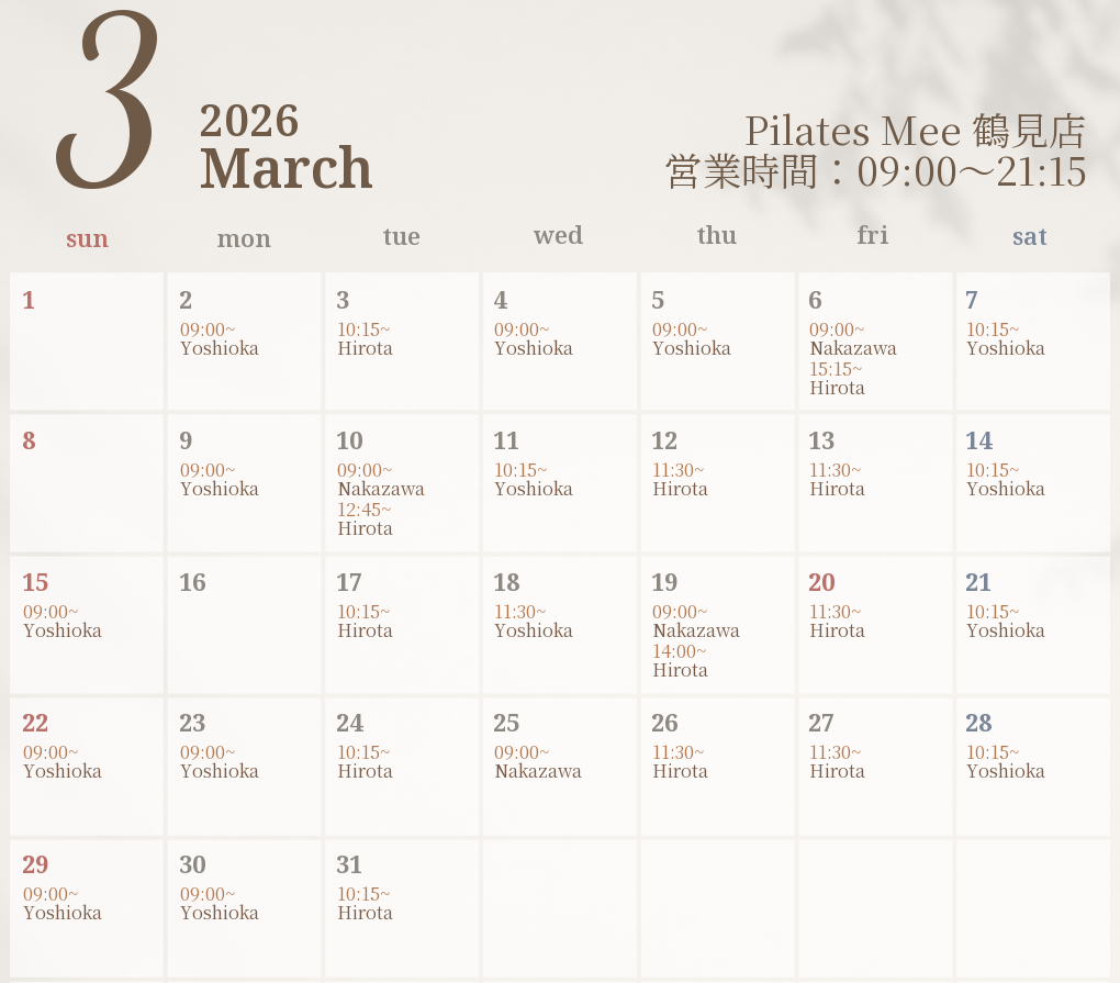 2026年3月の出勤スケジュールを公開しました