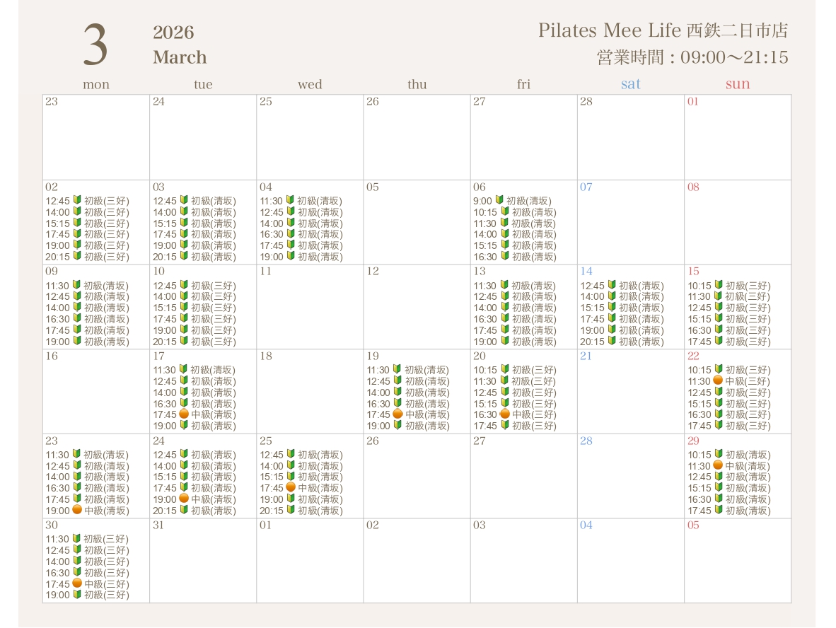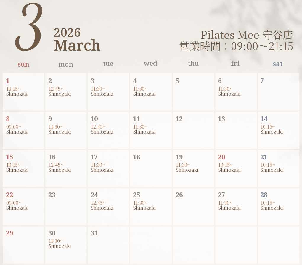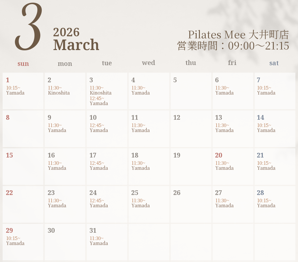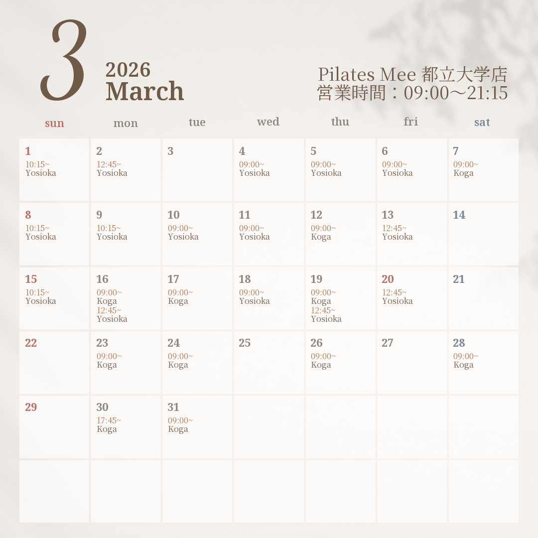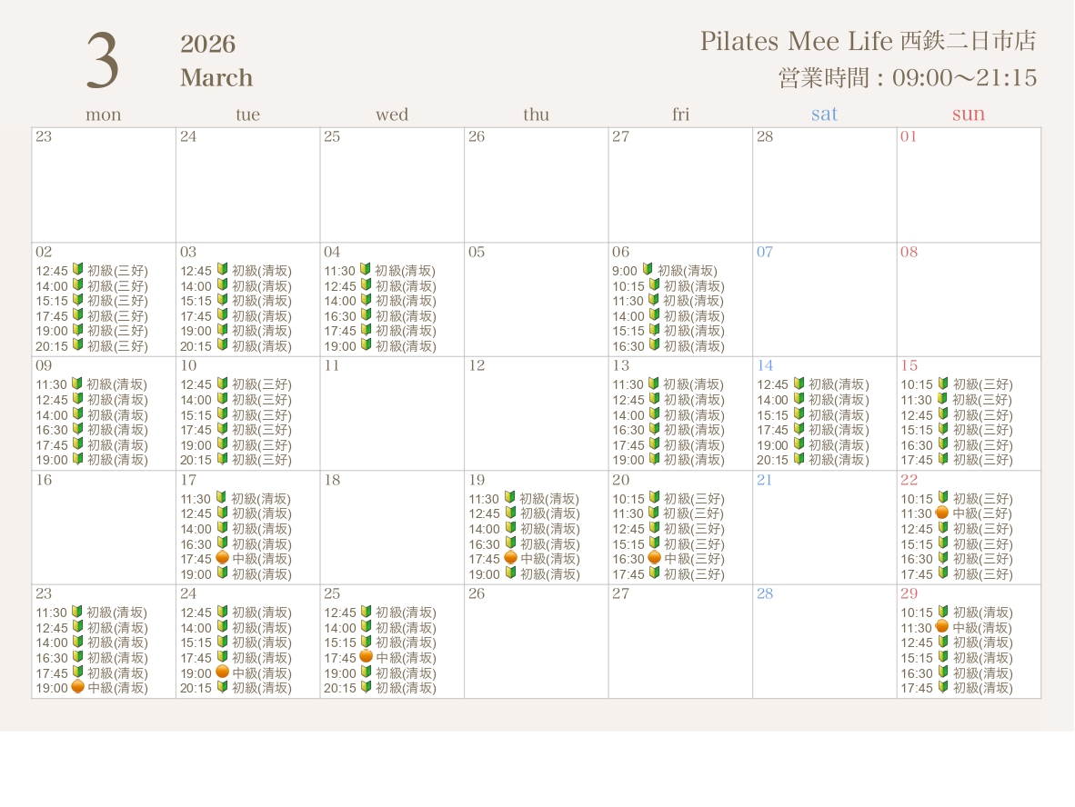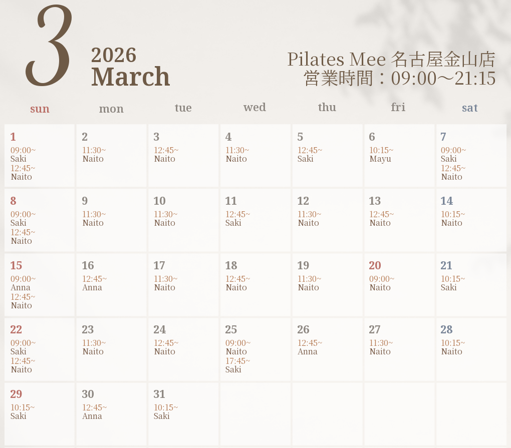 2026年3月の出勤スケジュールを公開しました