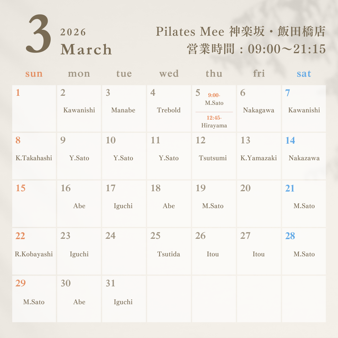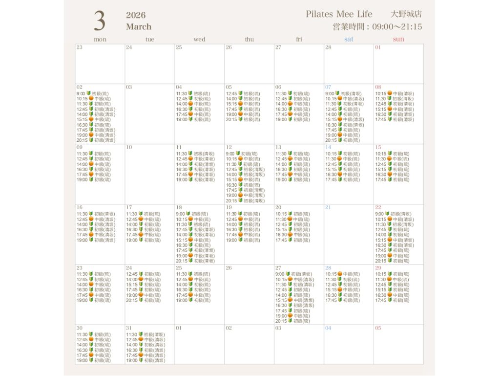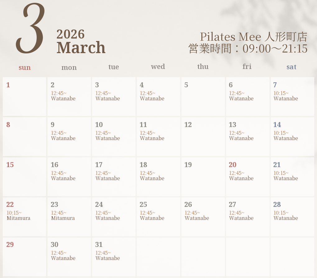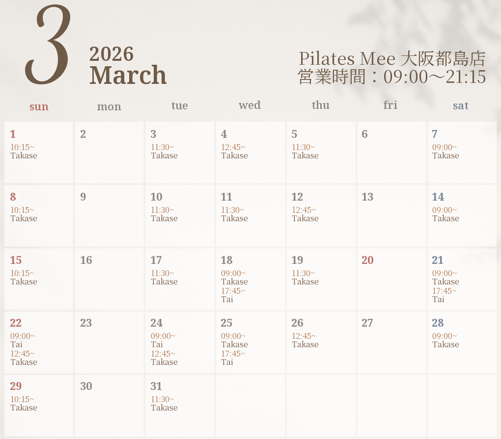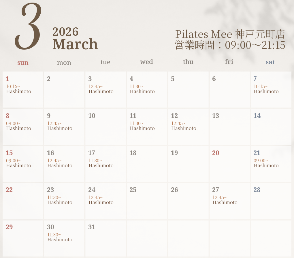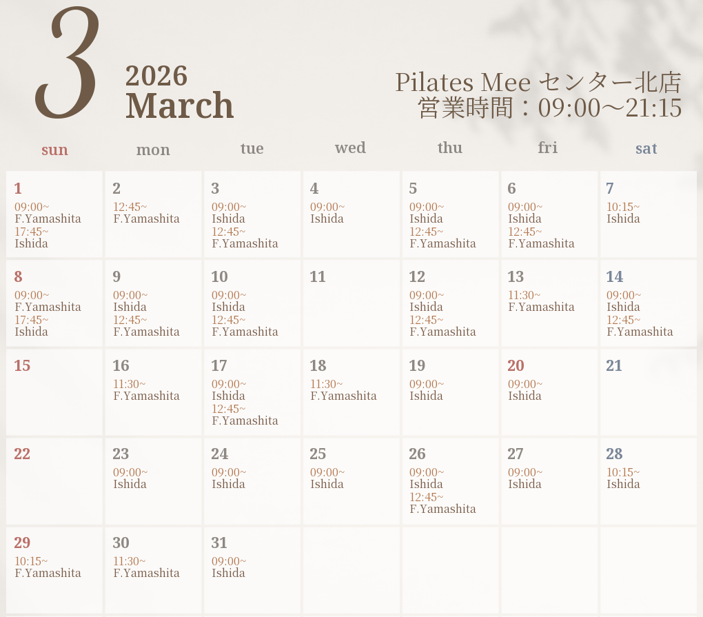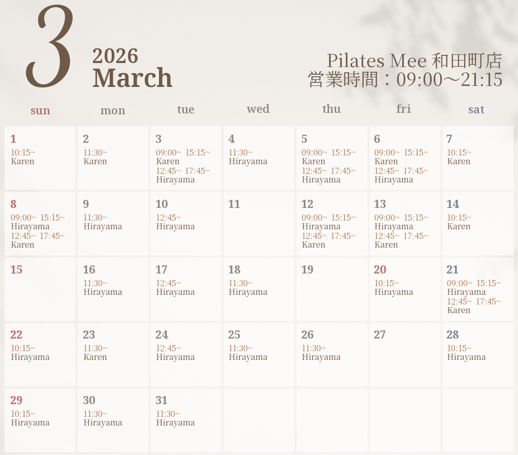 2026年3月の出勤スケジュールを公開しました