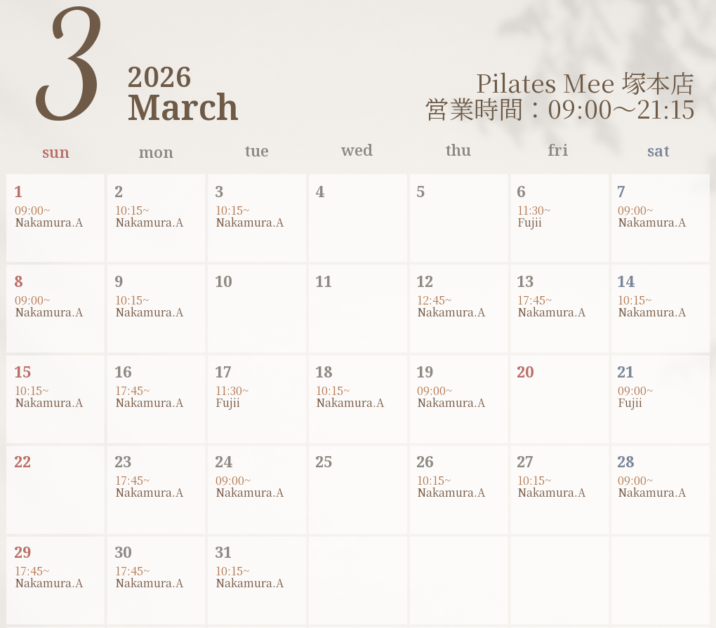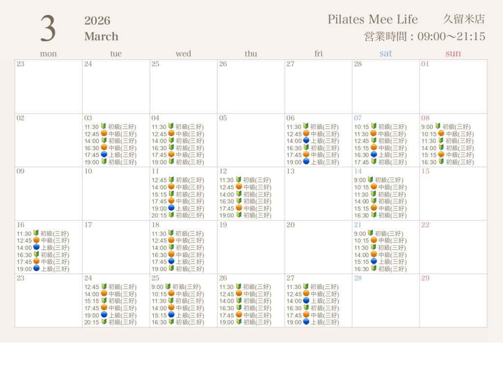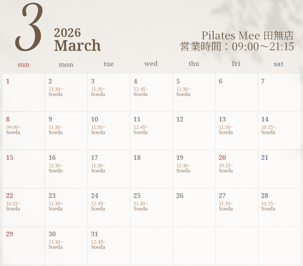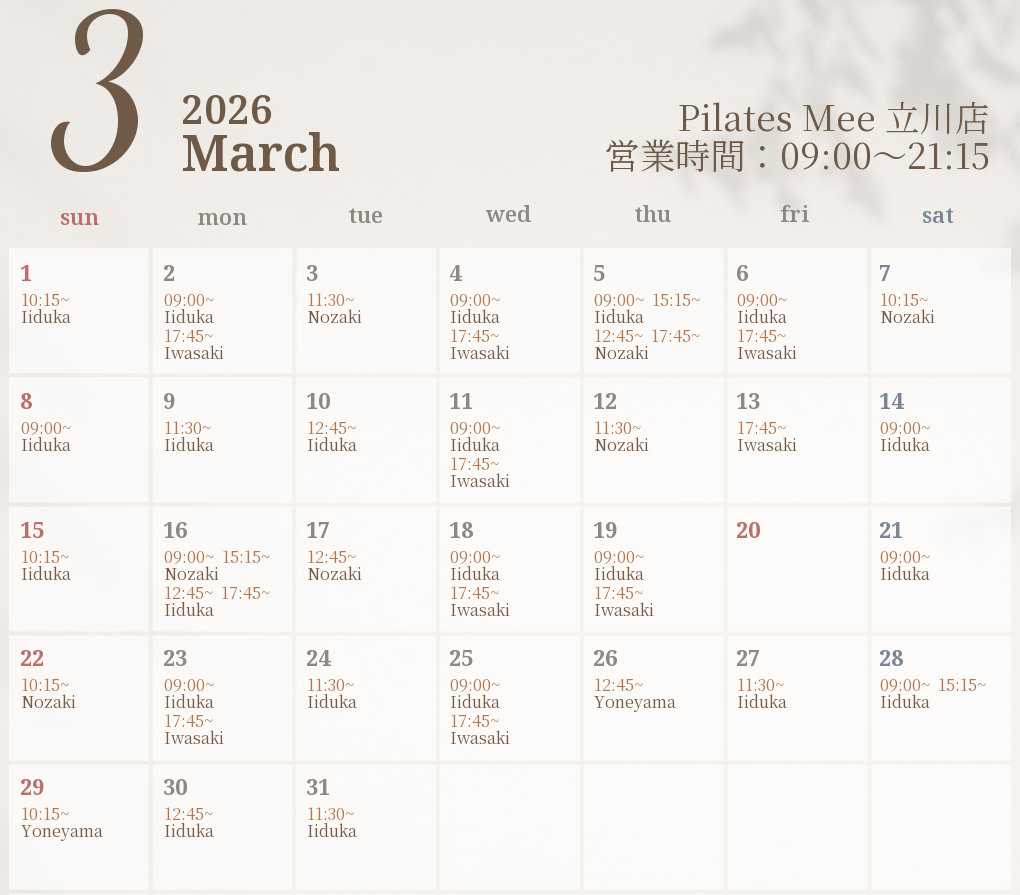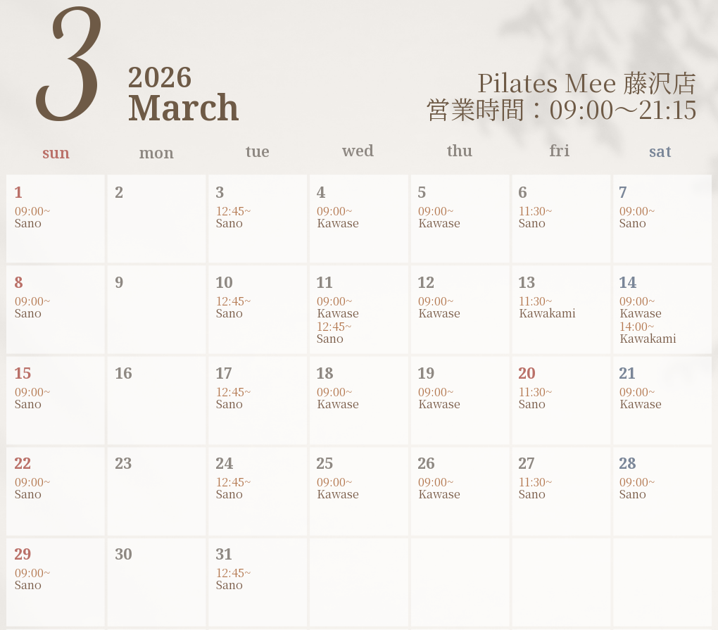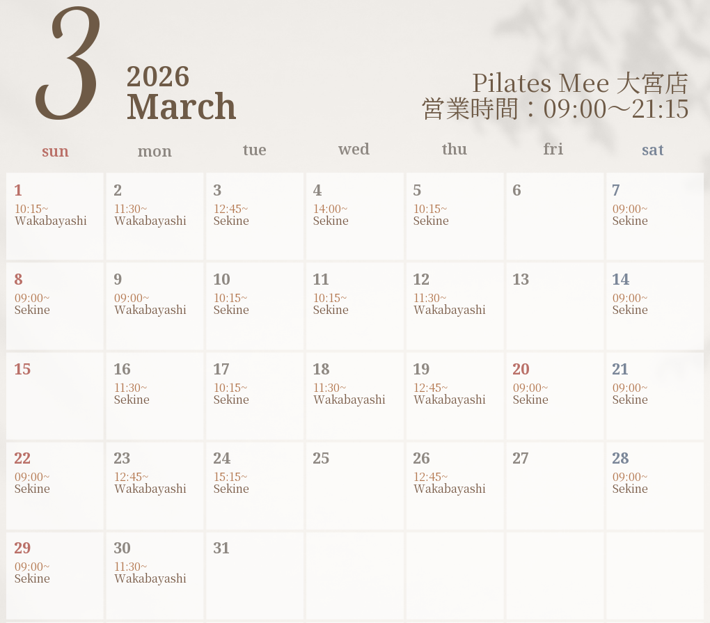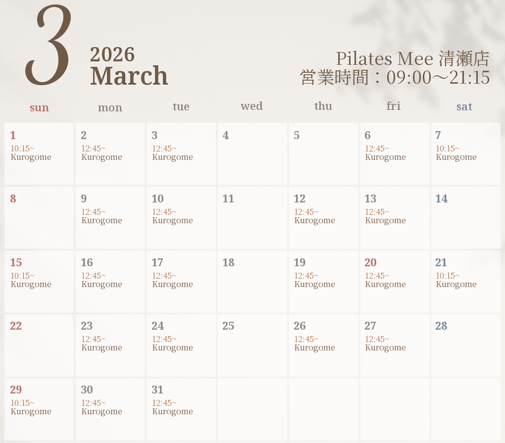 2026年3月の出勤スケジュールを公開しました
