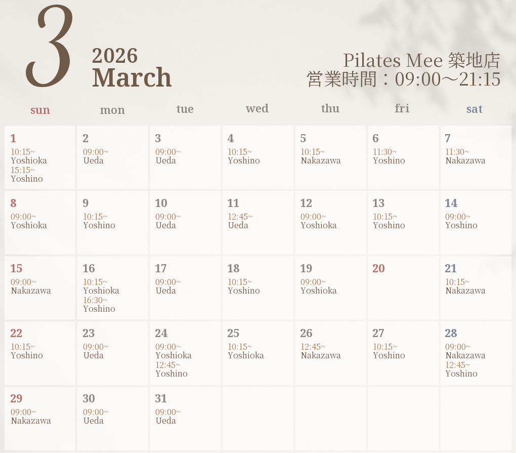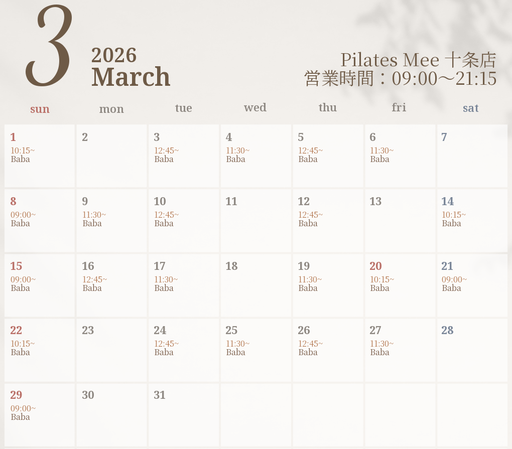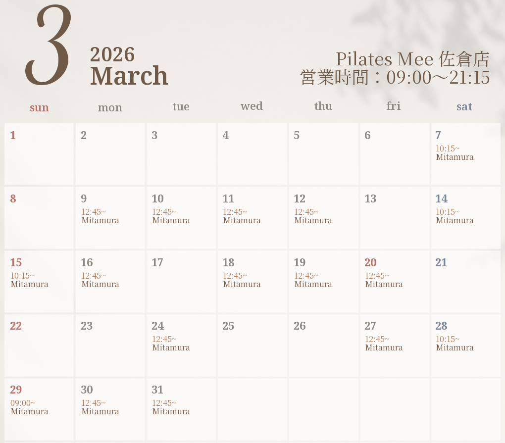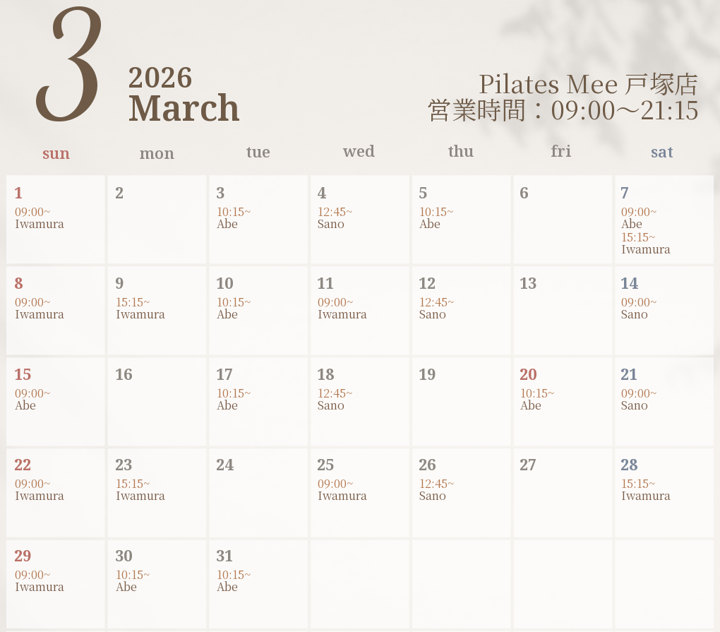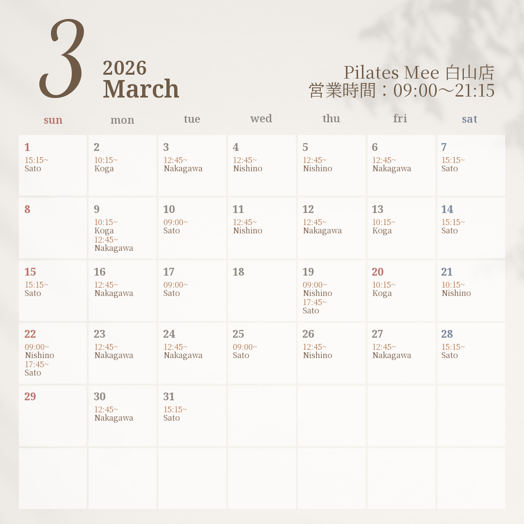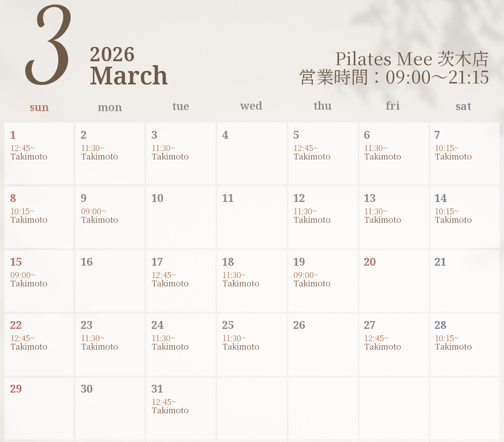2026年3月の出勤スケジュールを公開しました