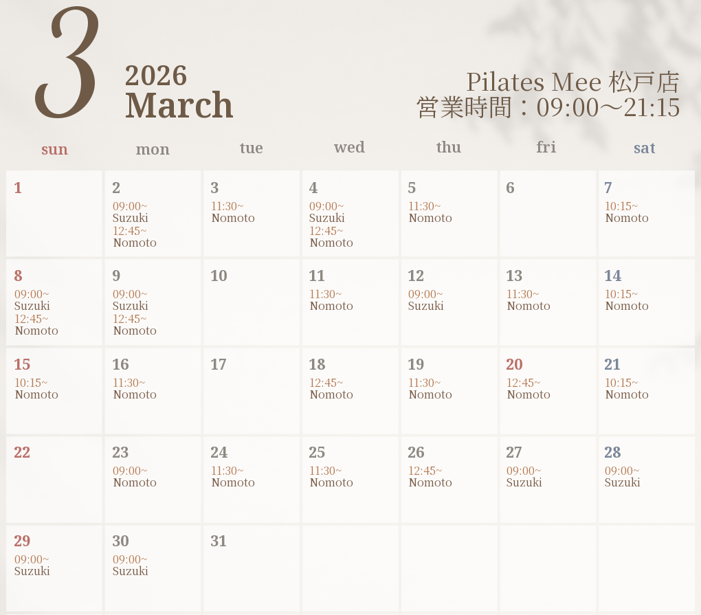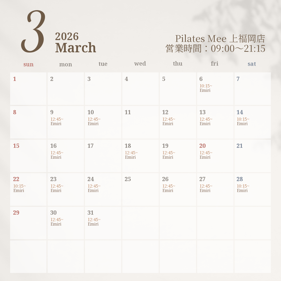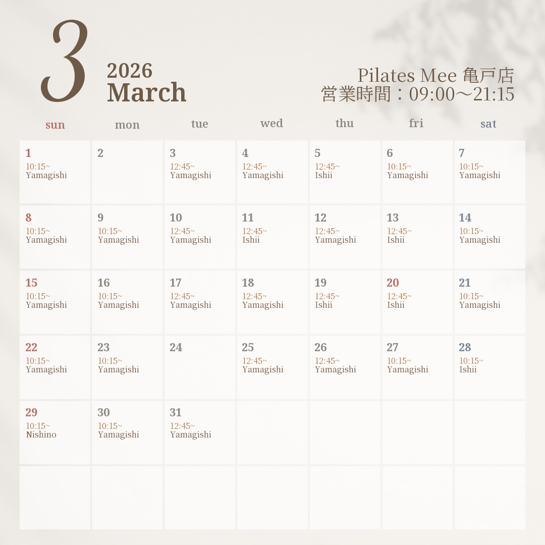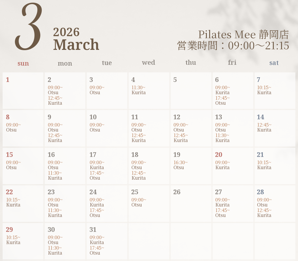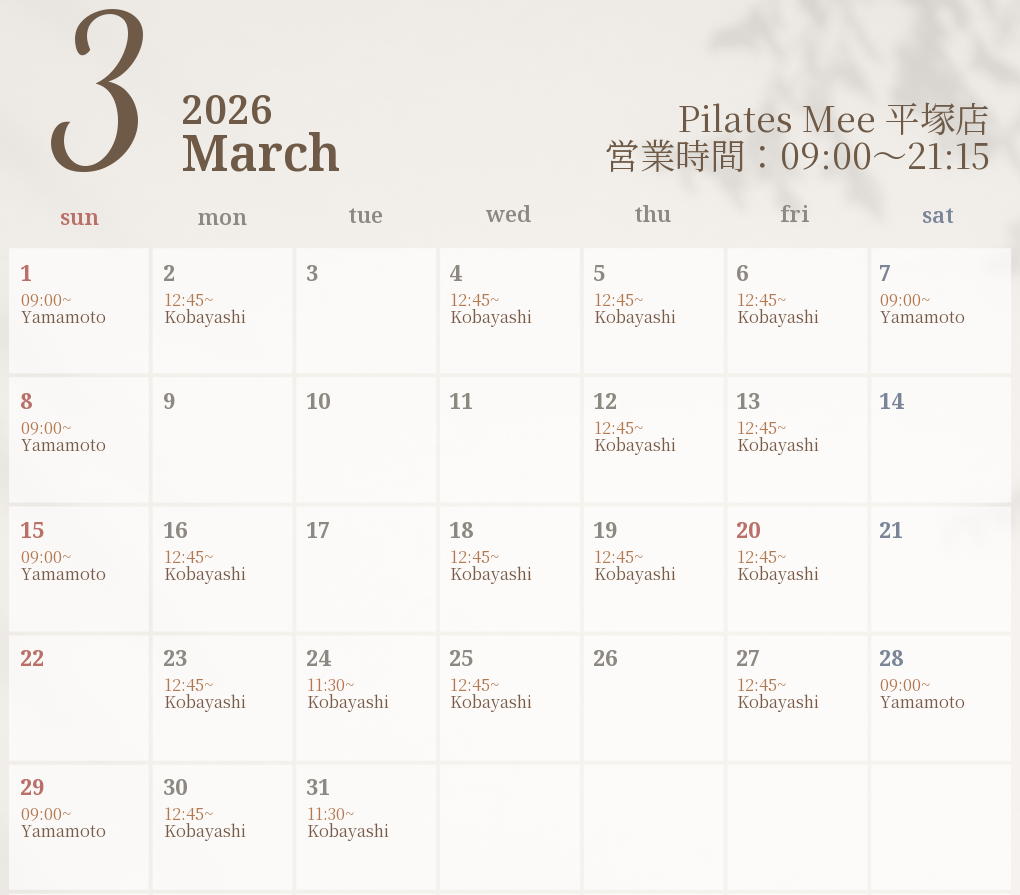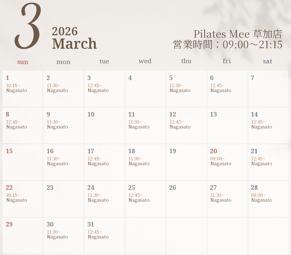2026年3月の出勤スケジュールを公開しました