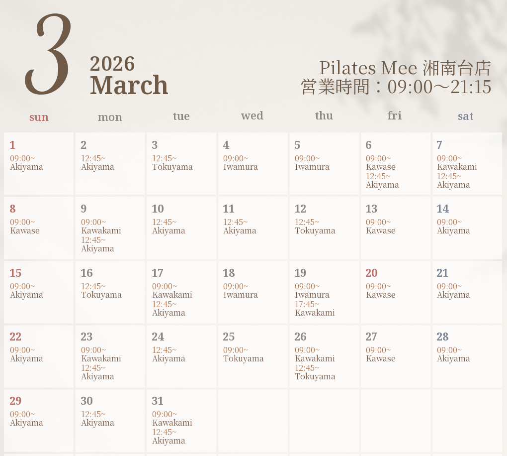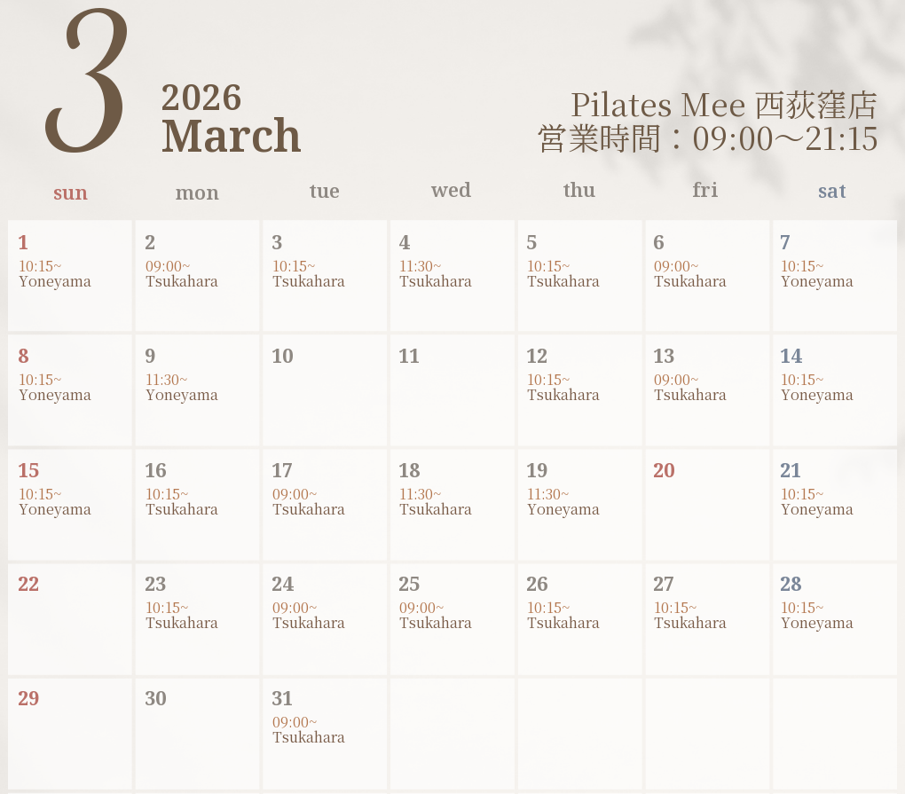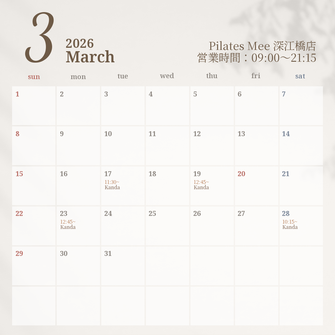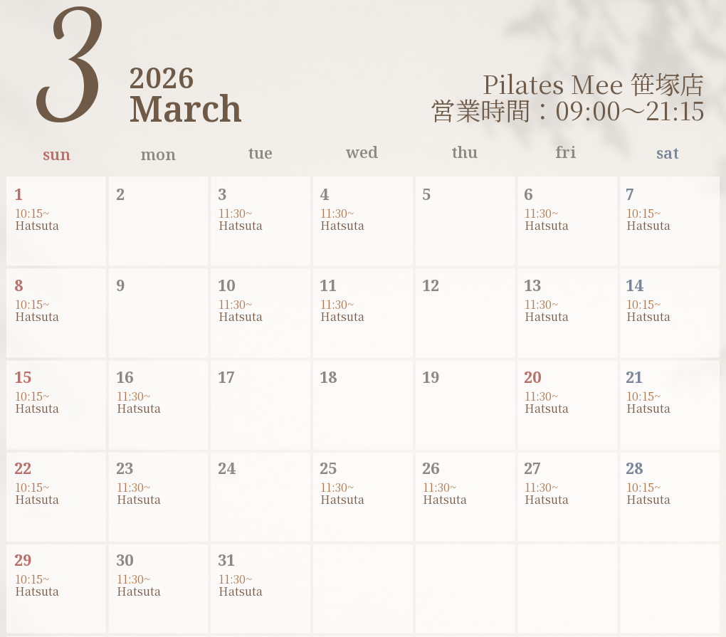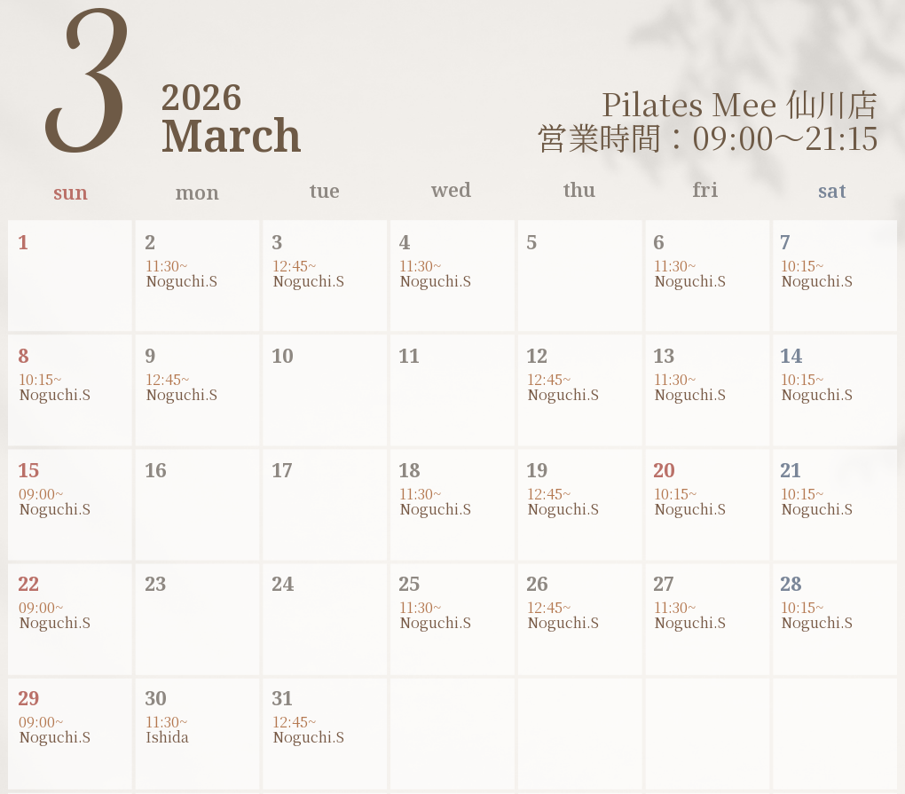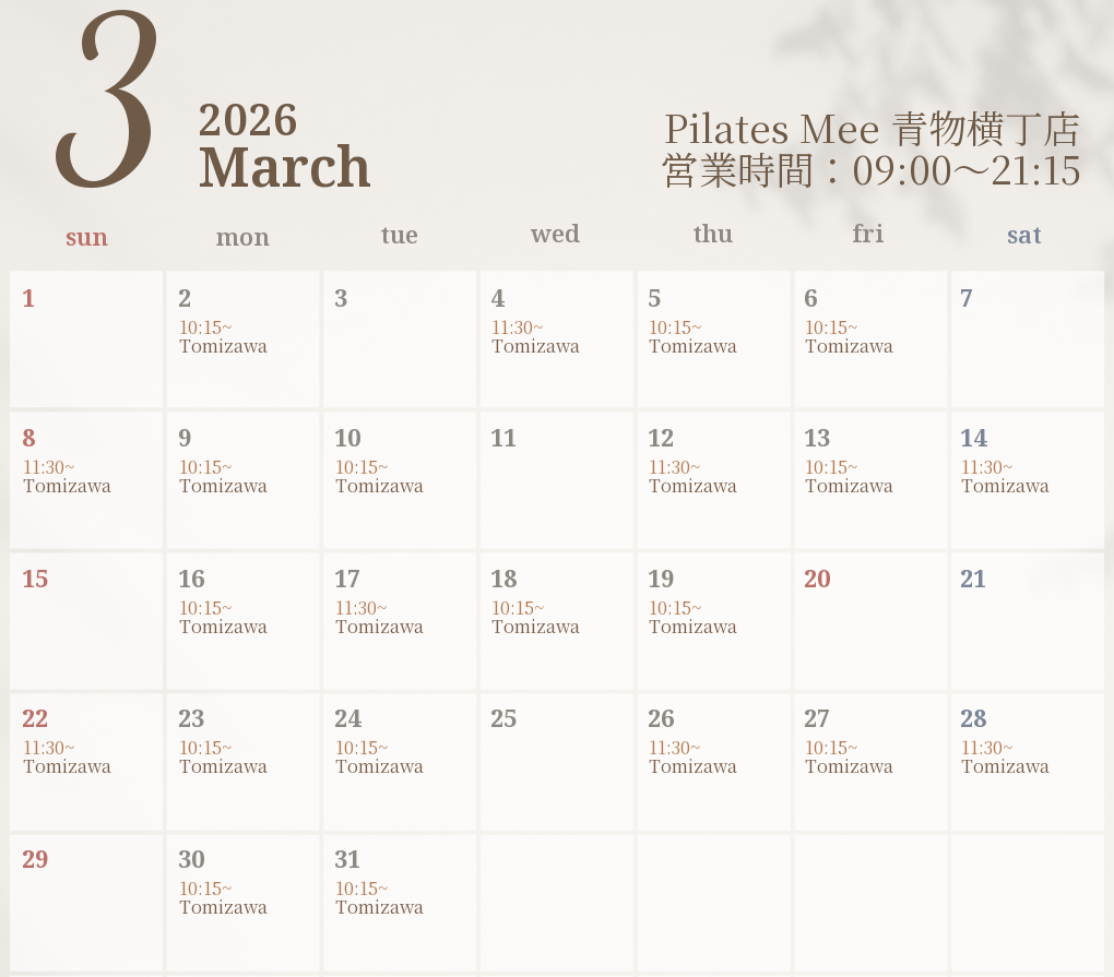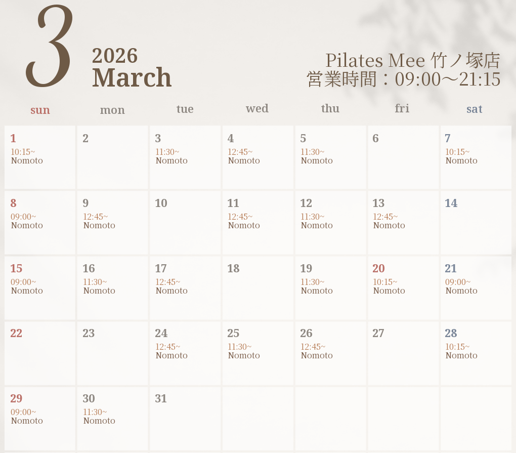 2026年3月の出勤スケジュールを公開しました
