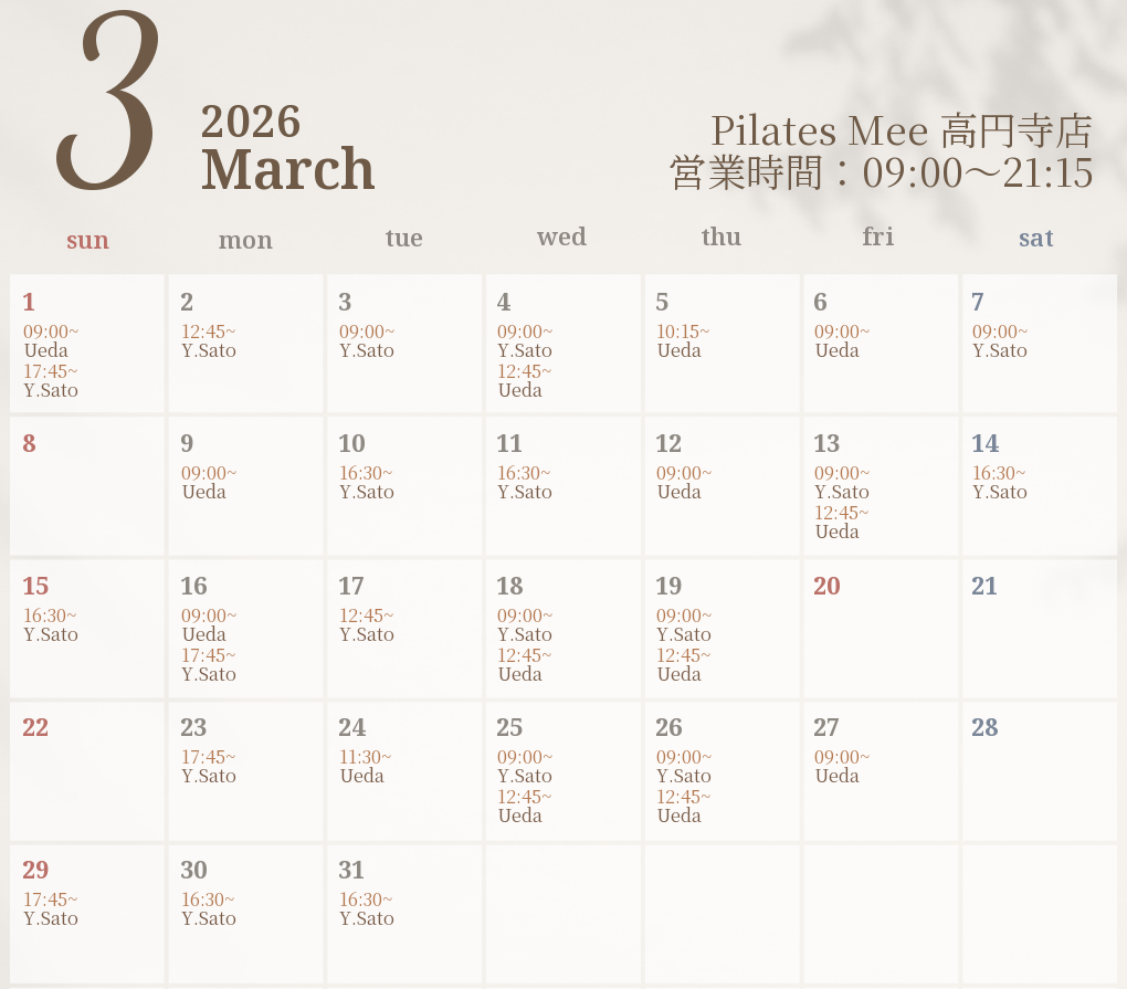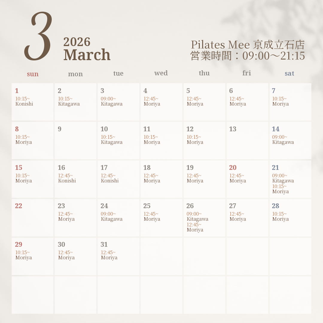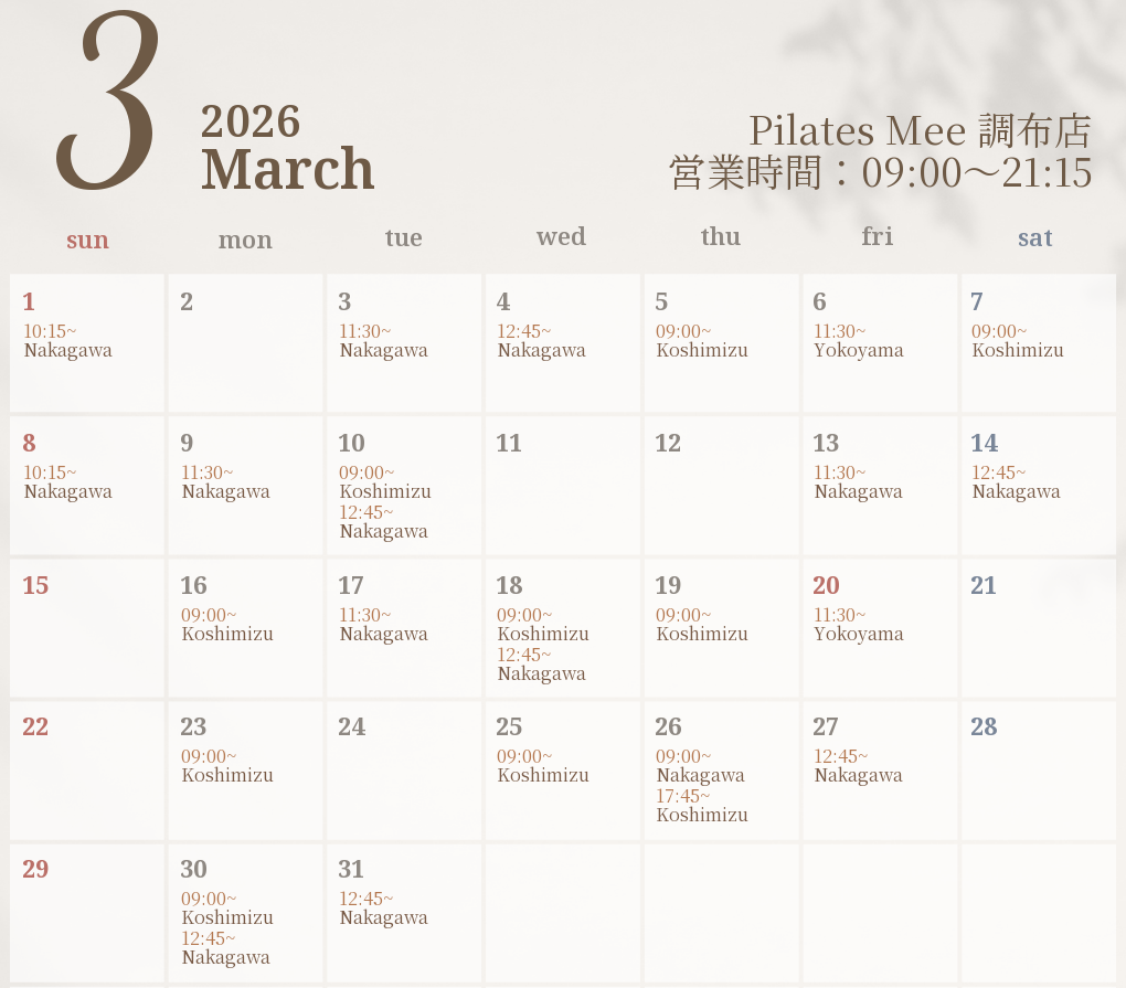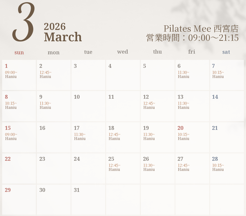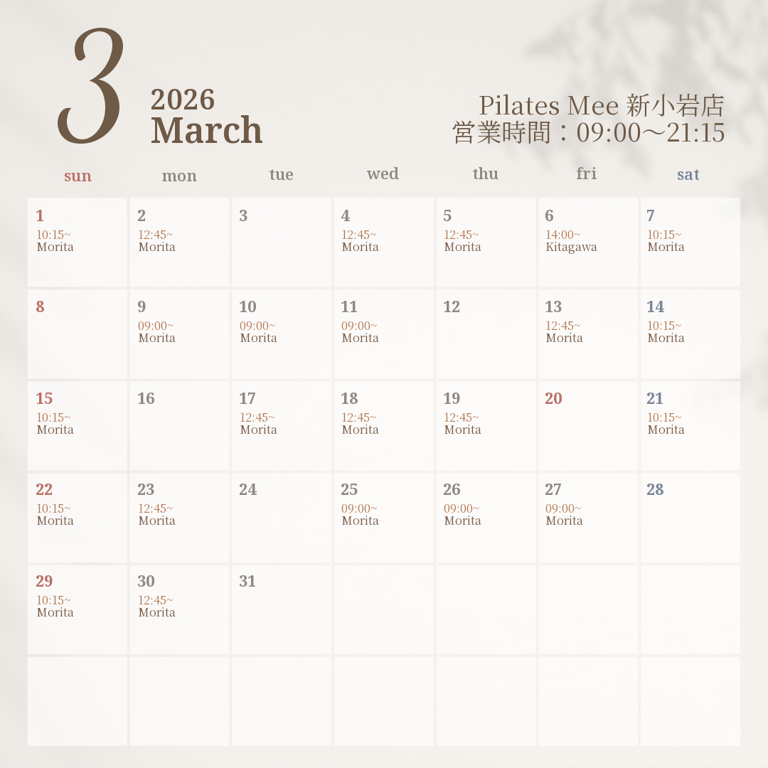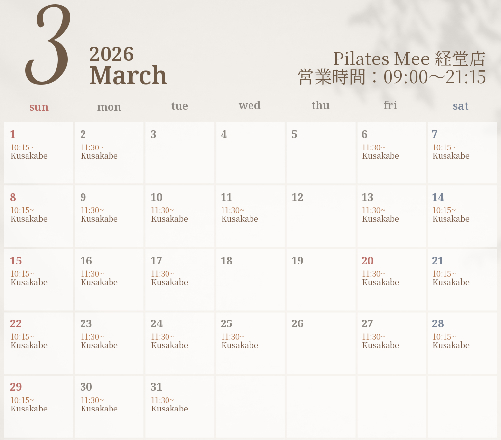 2026年3月の出勤スケジュールを公開しました