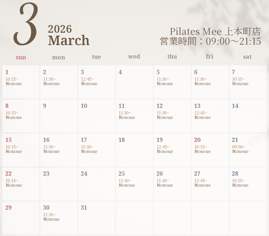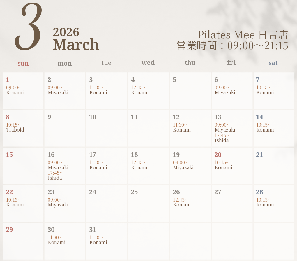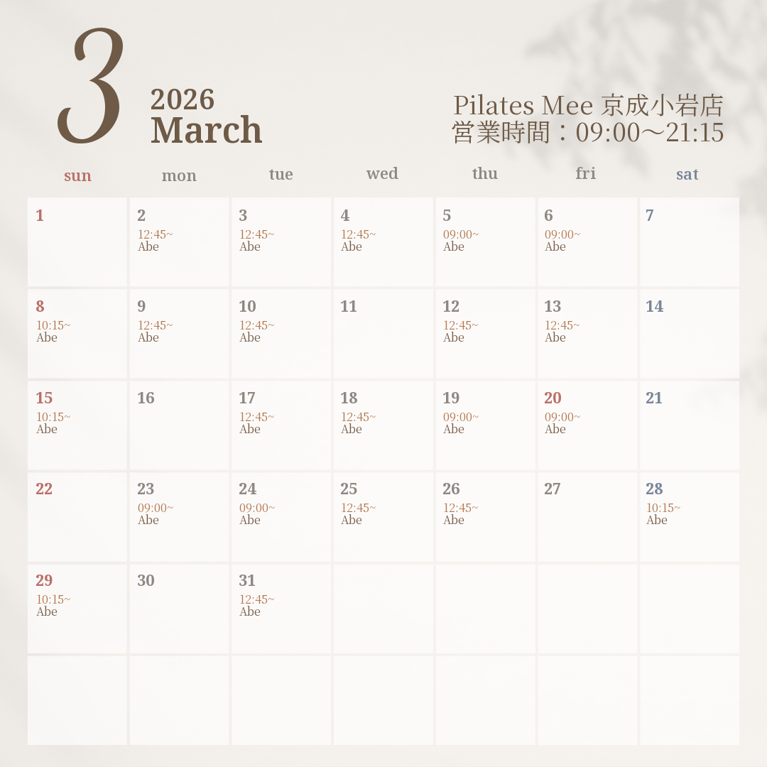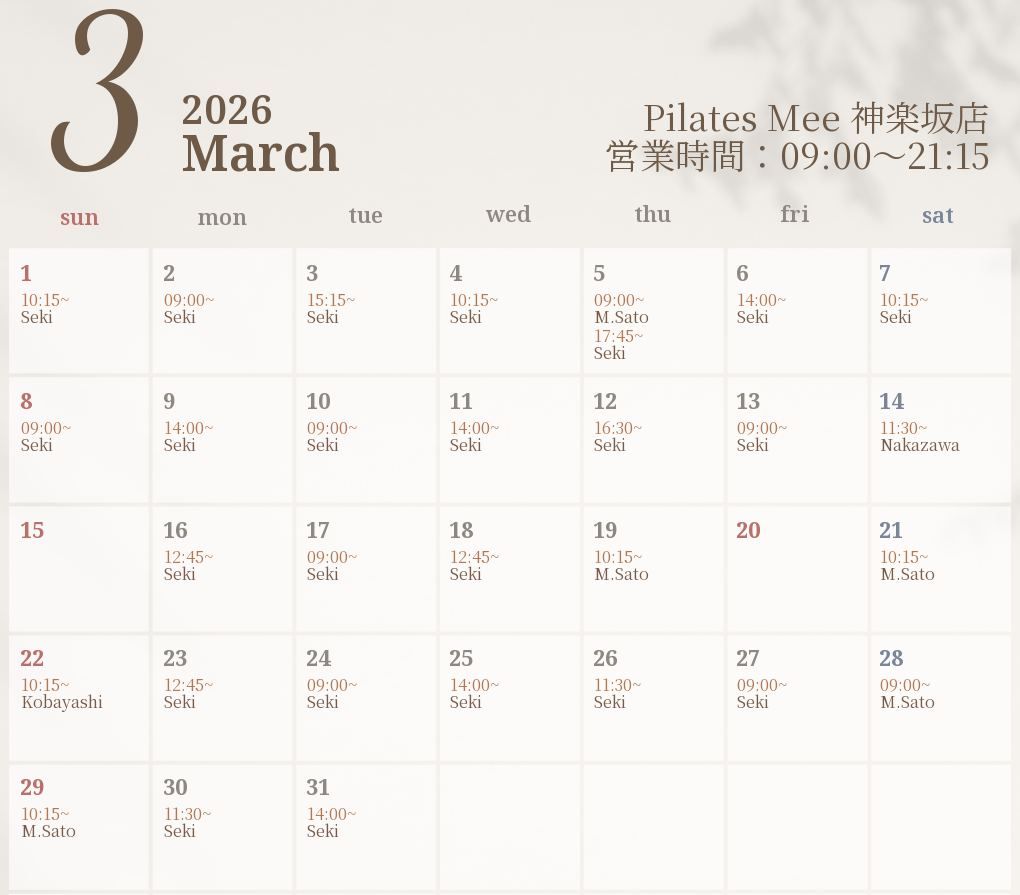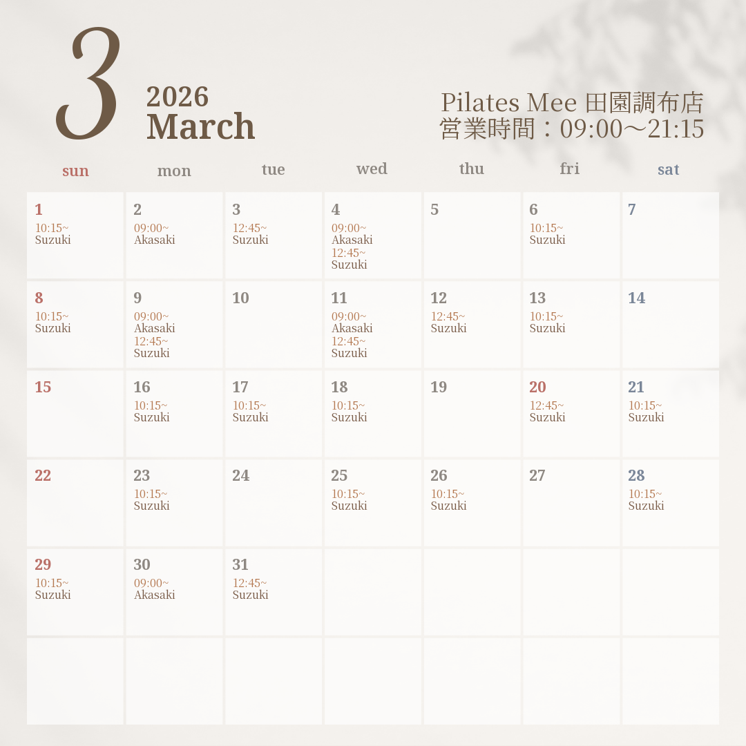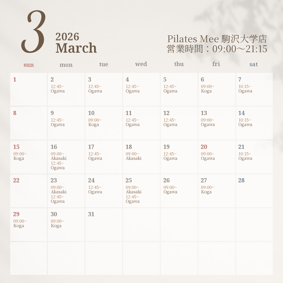 2026年3月の出勤スケジュールを公開しました