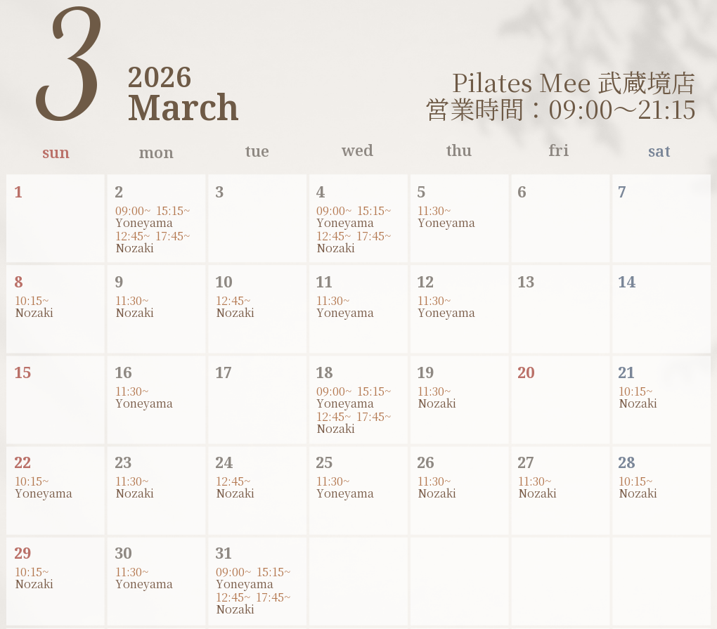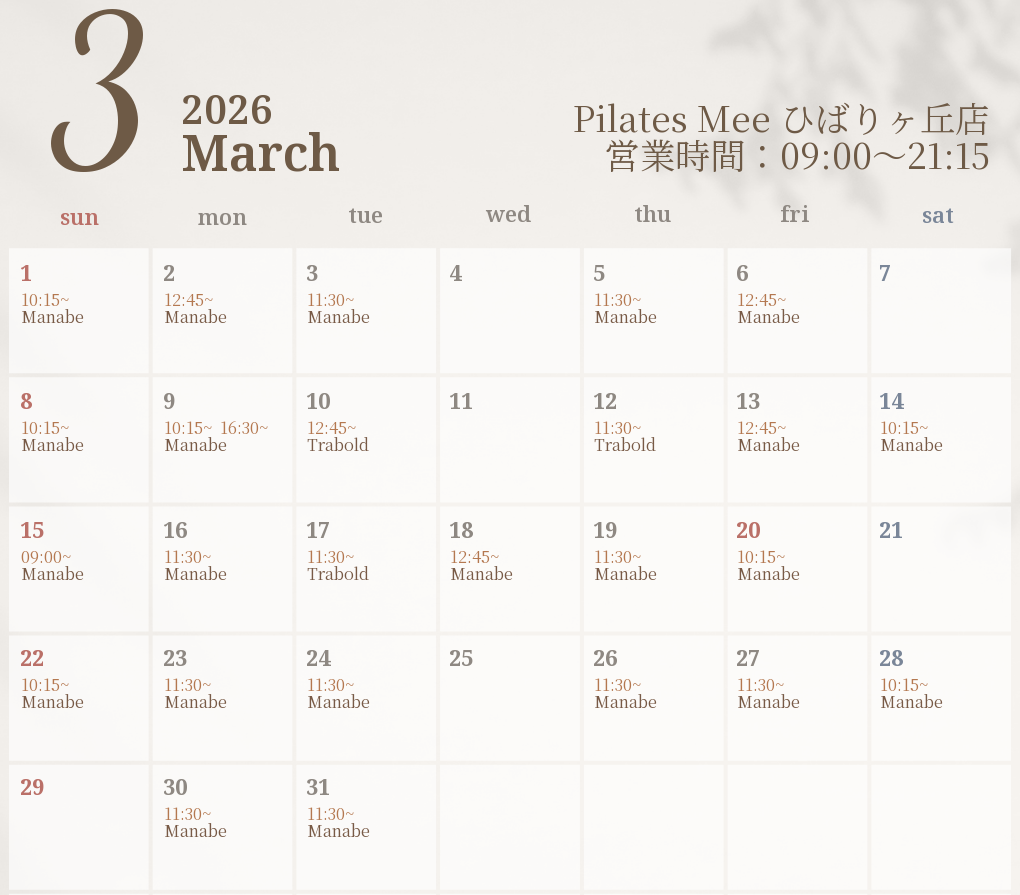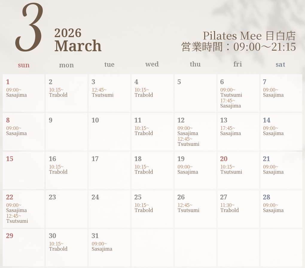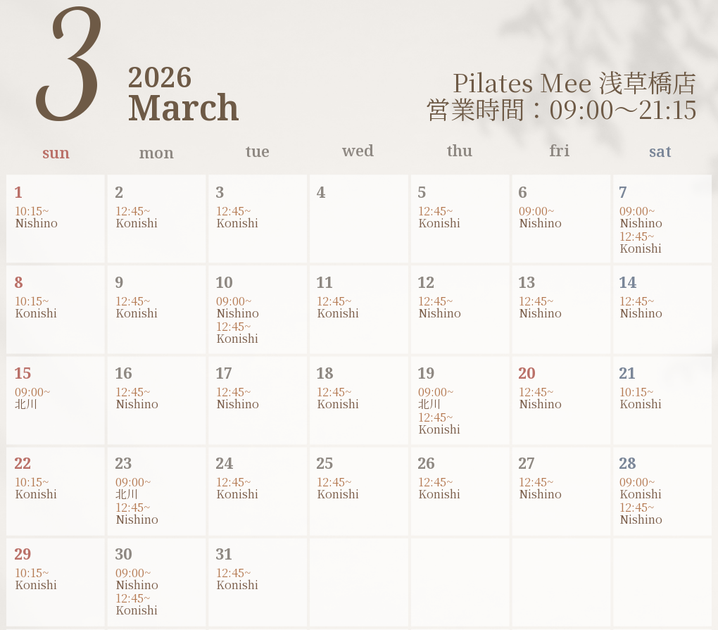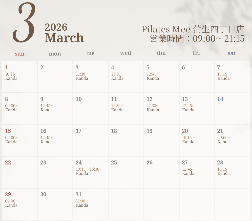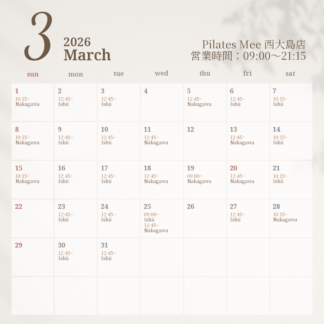 2026年3月の出勤スケジュールを公開しました