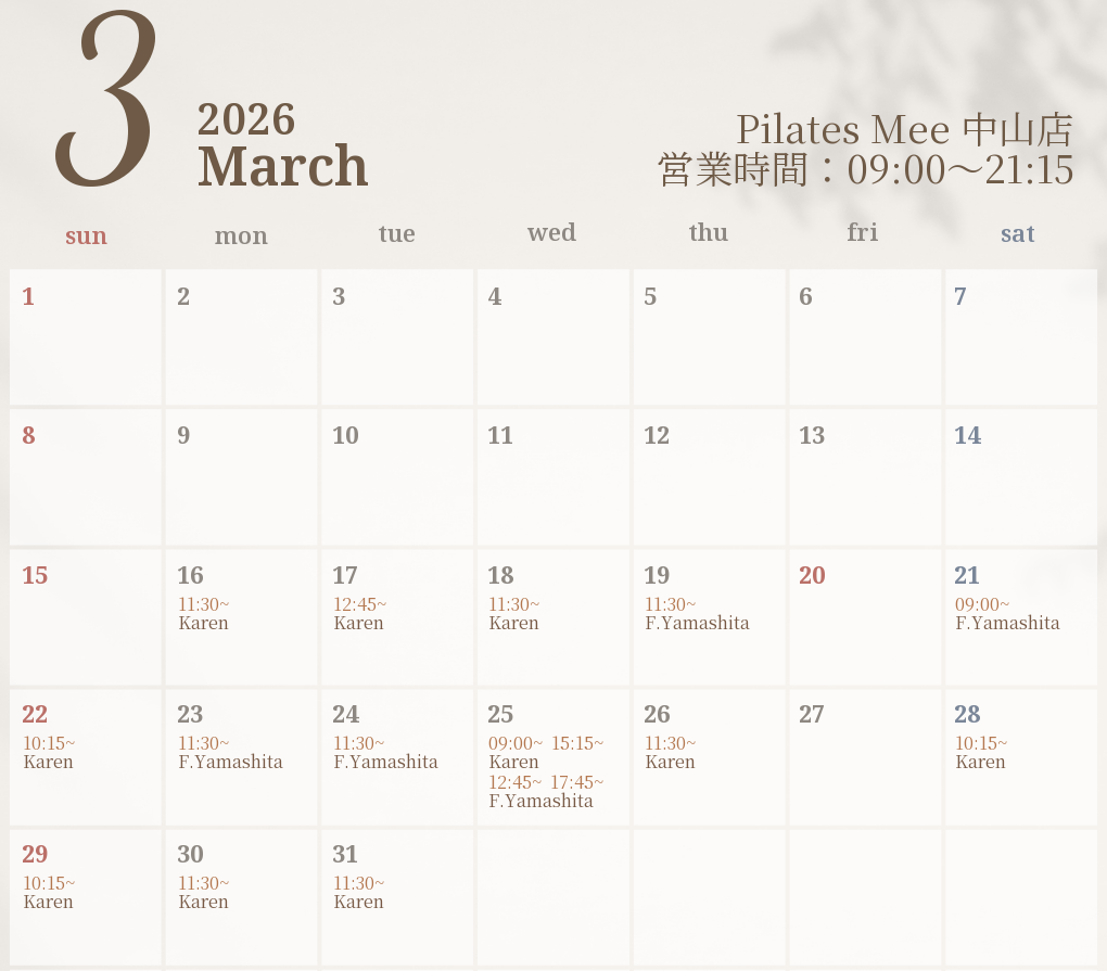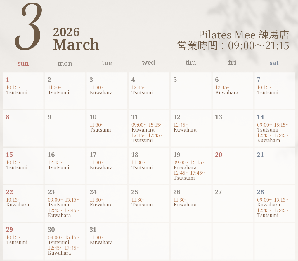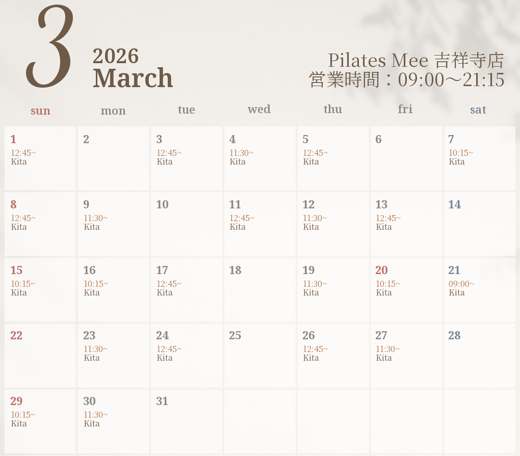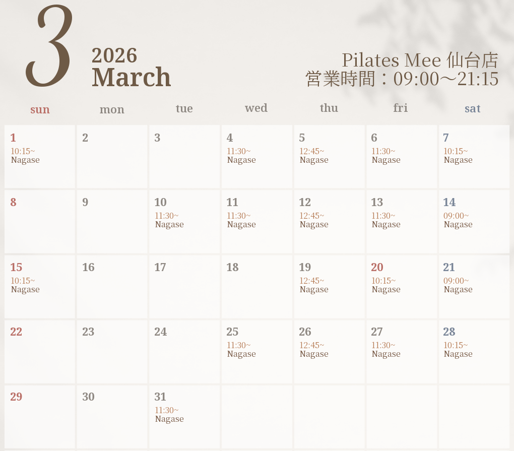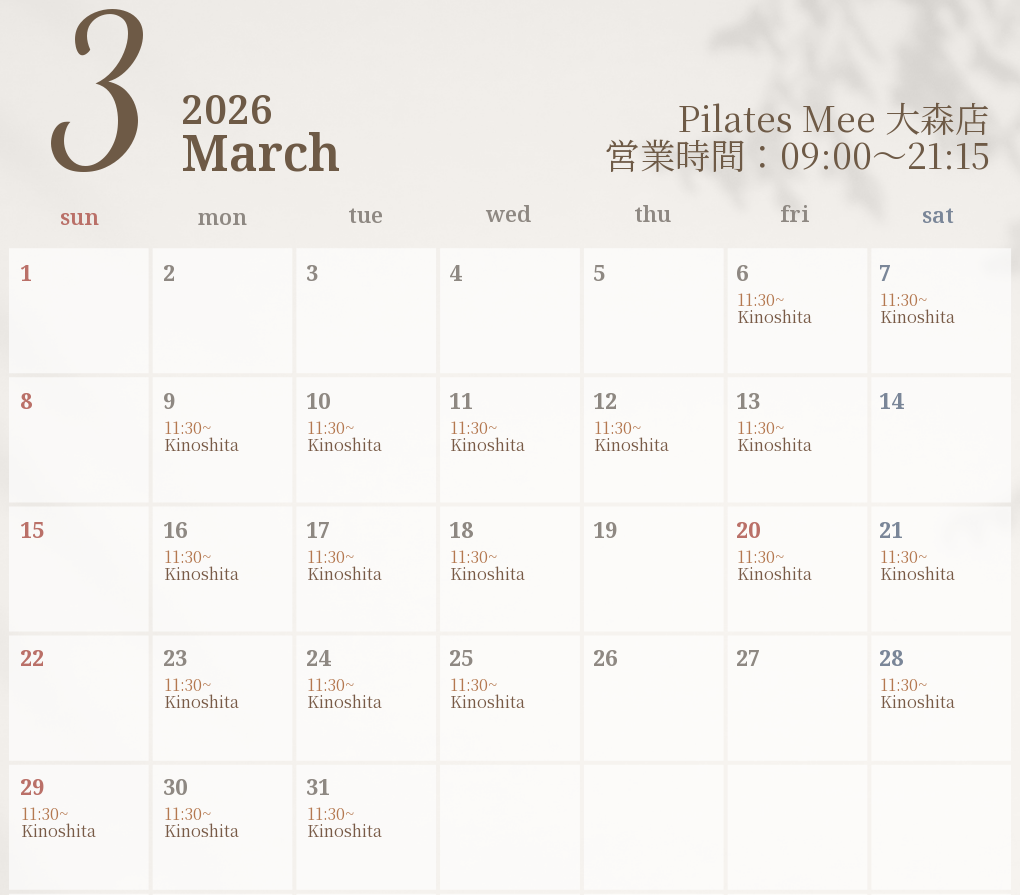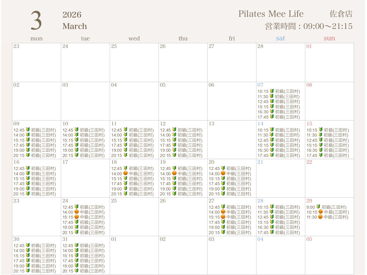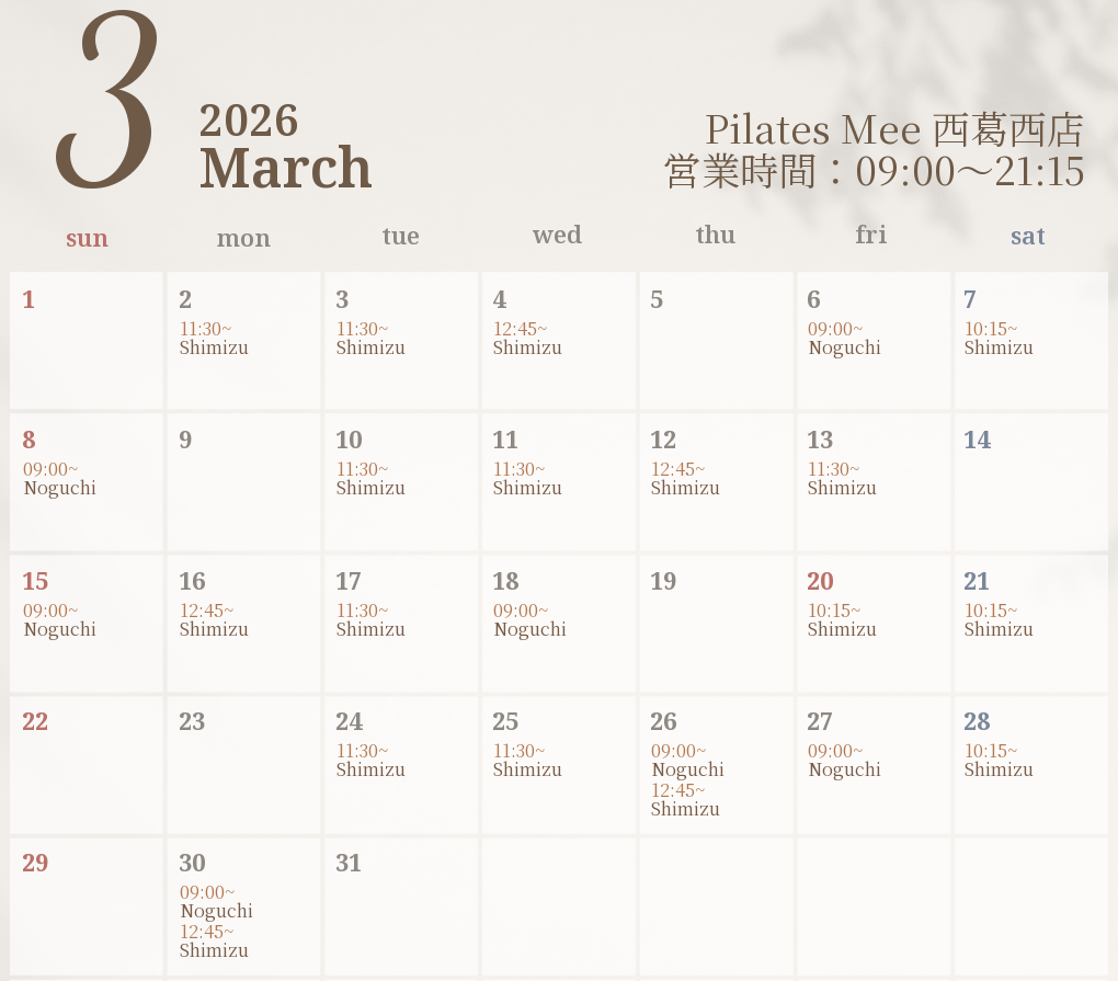 2026年3月の出勤スケジュールを公開しました