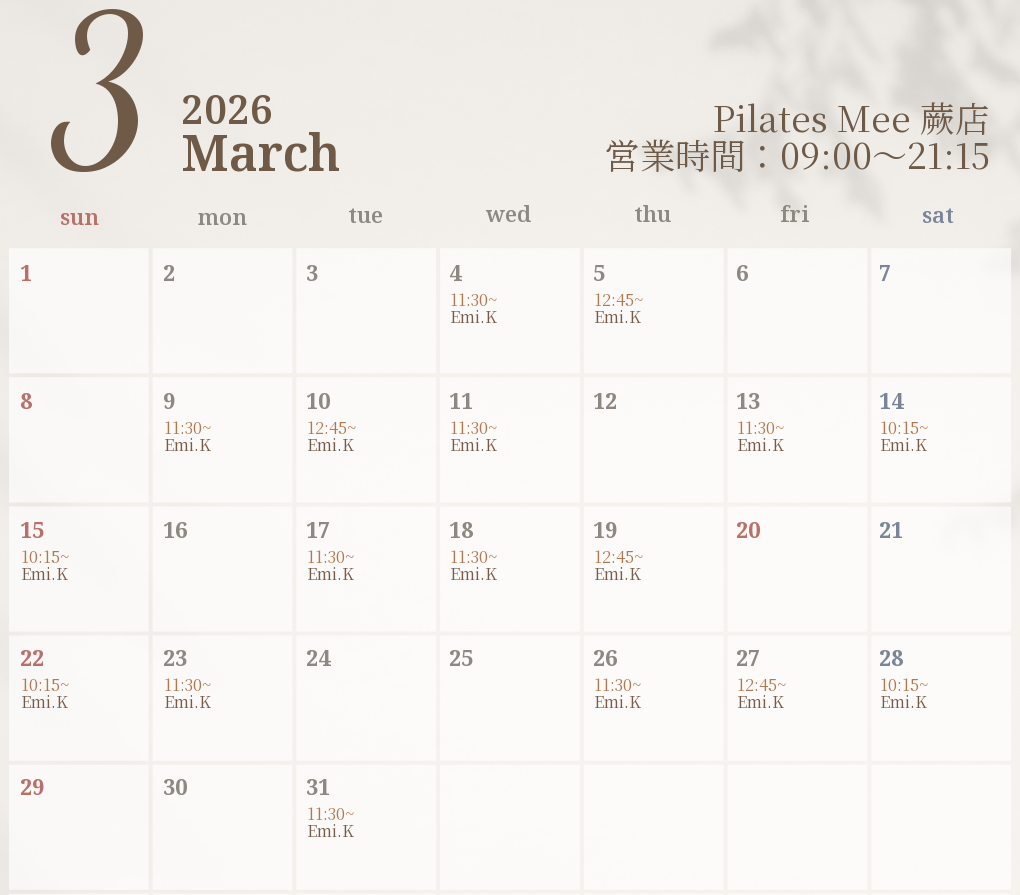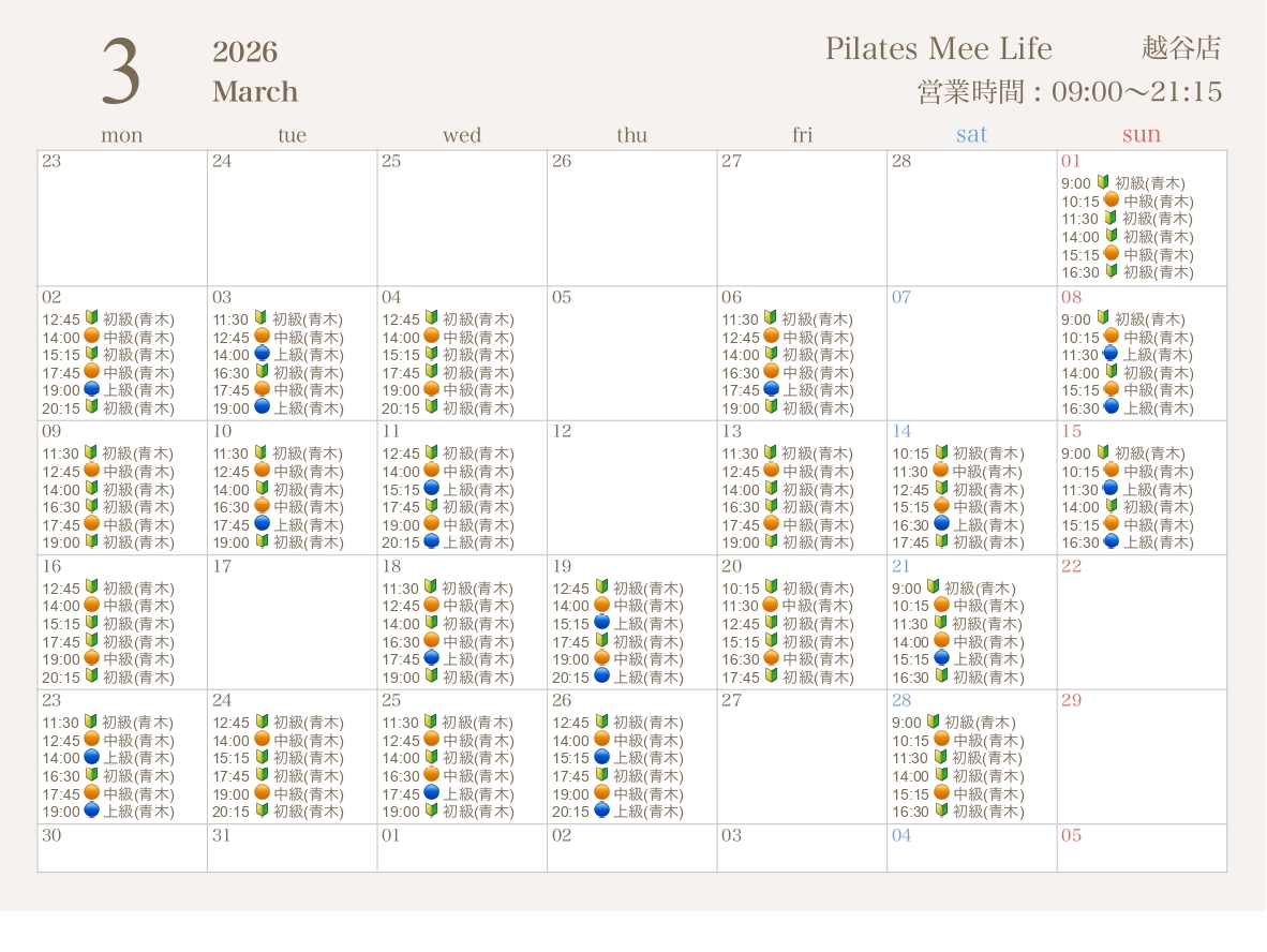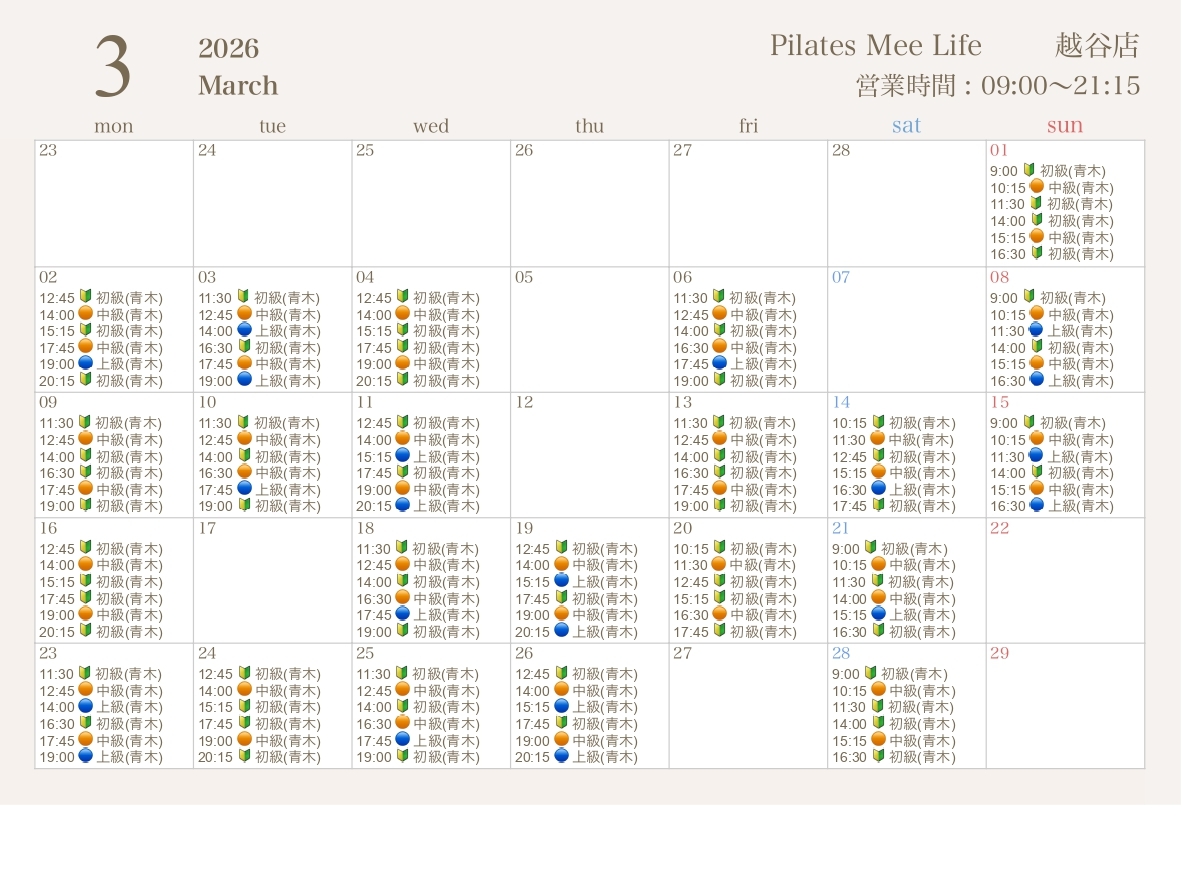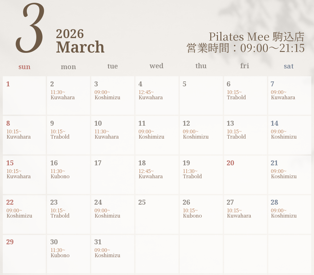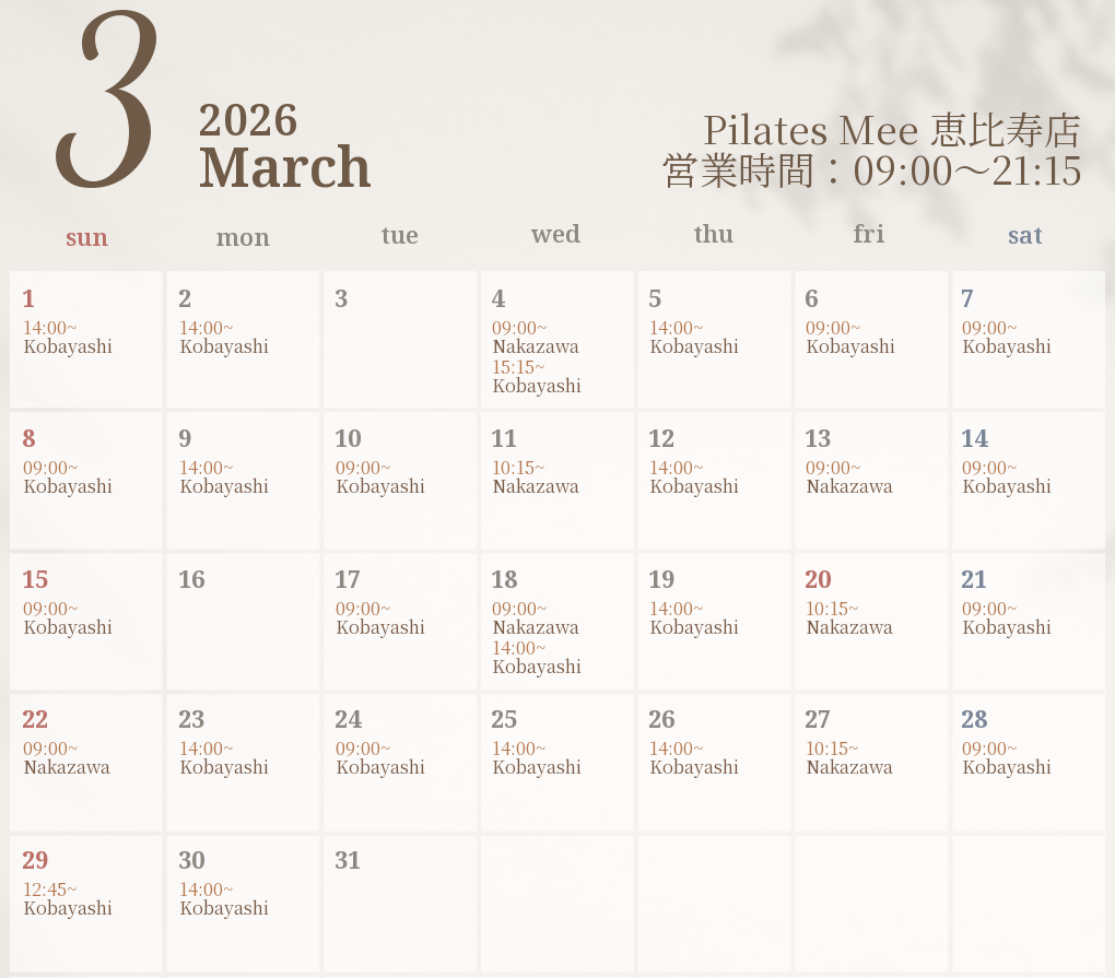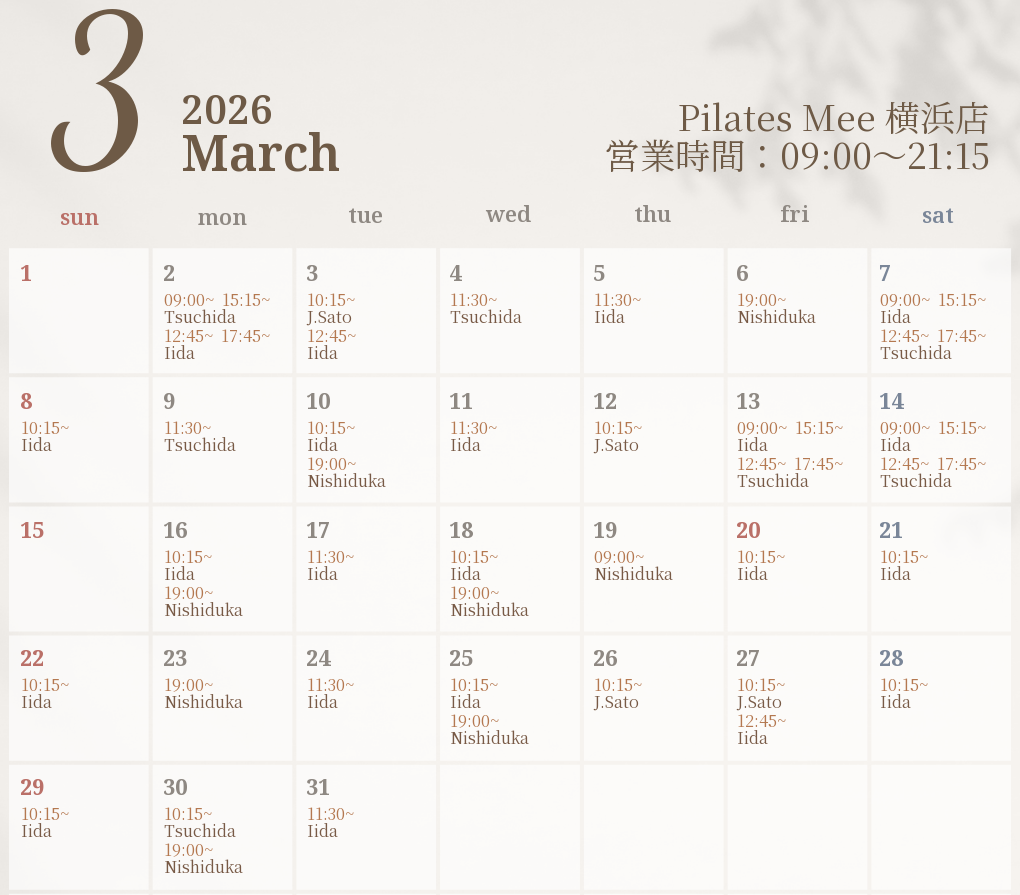 2026年3月の出勤スケジュールを公開しました