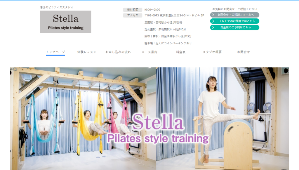 | Stella Pilates style training | 三田駅・田町駅 徒歩5分 | 1回 60分 10,890円~ | 産前産後にも対応 |