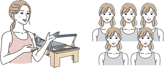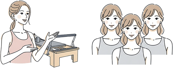 インストラクターが1名様ずつ十分に対応ができ、正しい姿勢と負荷でピラティスを行うことができます。 -