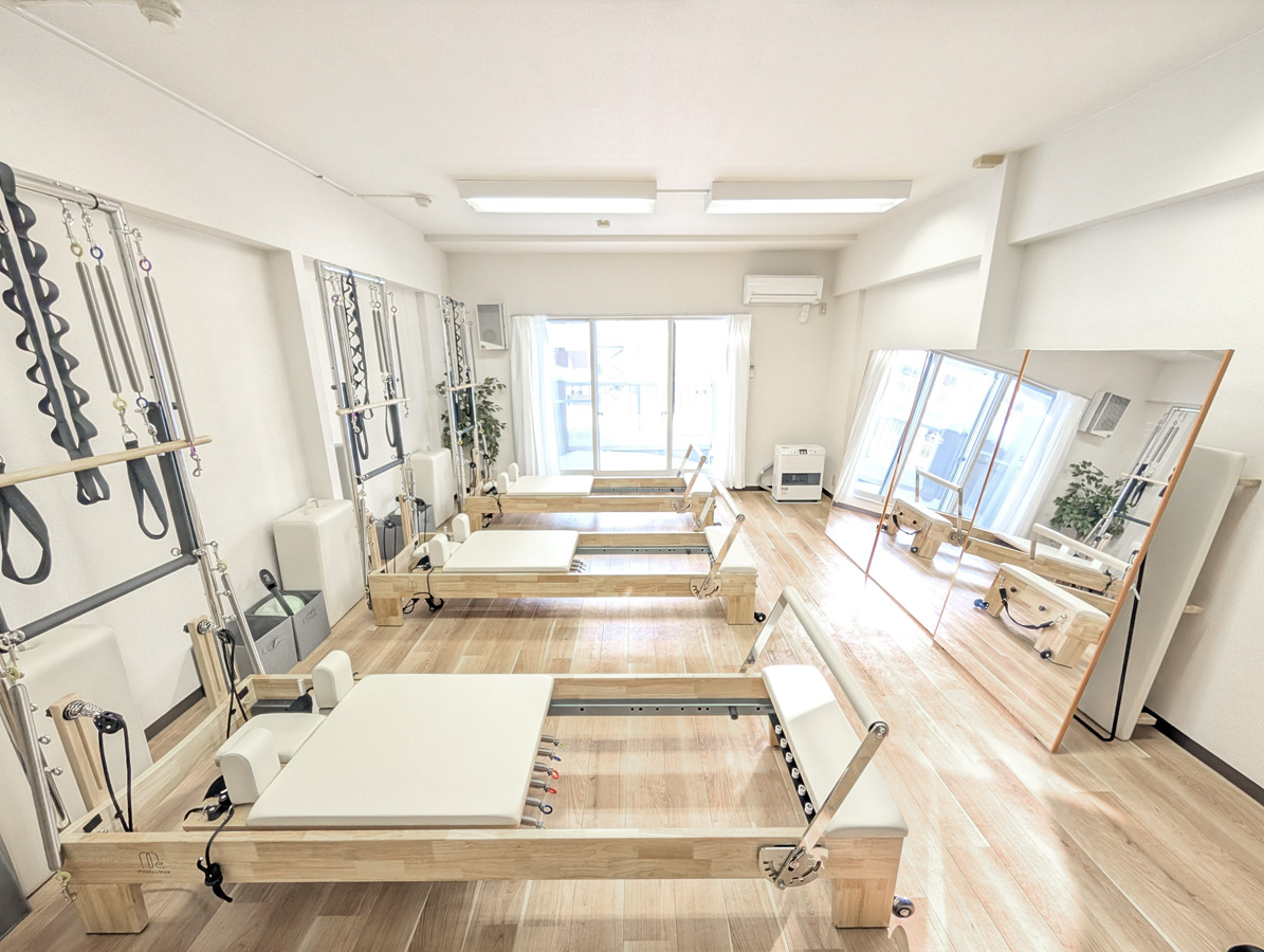 Pilates Meeは、1人のインストラクターにつき最大3名のお客様を同時に指導するセミパーソナルピラティススタジオです。