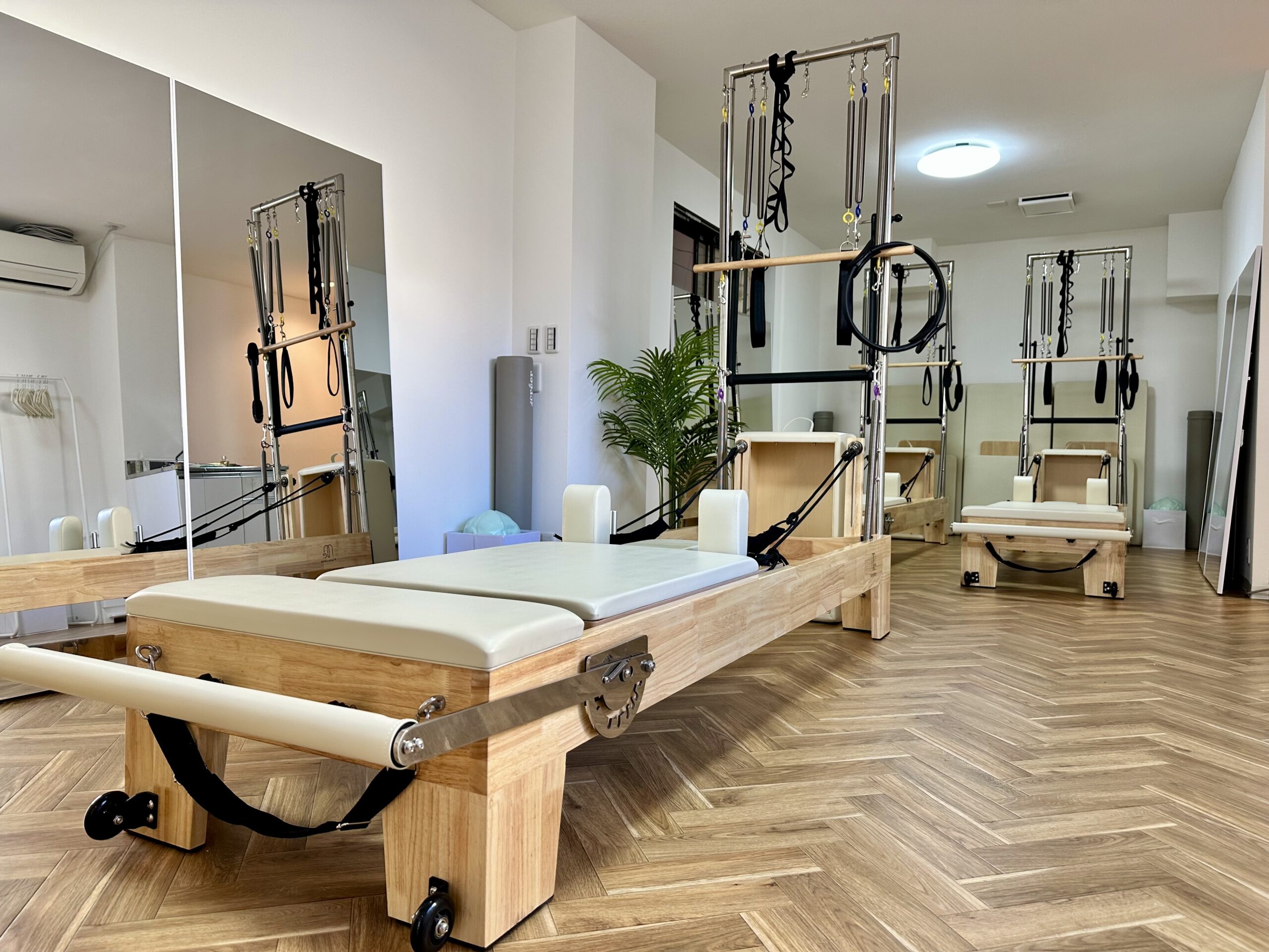 Pilates Meeは、1人のインストラクターにつき最大3名のお客様を同時に指導するセミパーソナルピラティススタジオです。