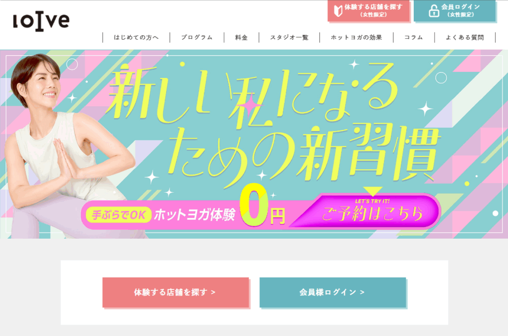 loIve八戸店は、八戸ショッピングセンターラピア別館にある女性専用ホットヨガスタジオです。