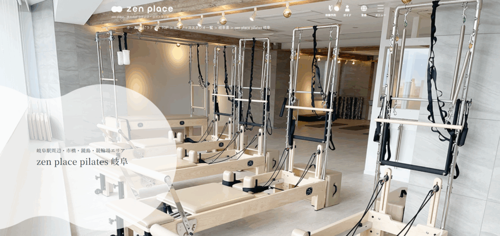 | zen place pilates 岐阜 | 名鉄岐阜駅から徒歩2分 | マット&マシン各2回:12,650円/月~ | 全国に150店舗以上展開の大手スタジオ、各種ピラティスマシンを完備 |