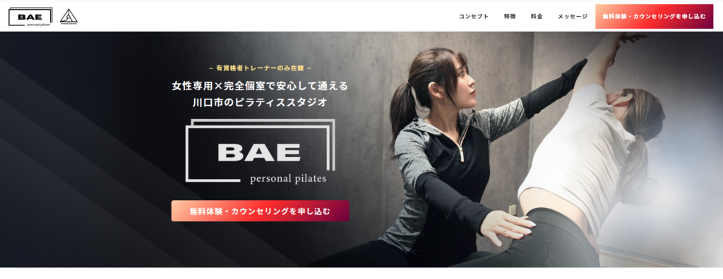 ピラティスBAE川口店は、川口駅より徒歩3分の場所にある女性専用のパーソナルピラティススタジオです。
