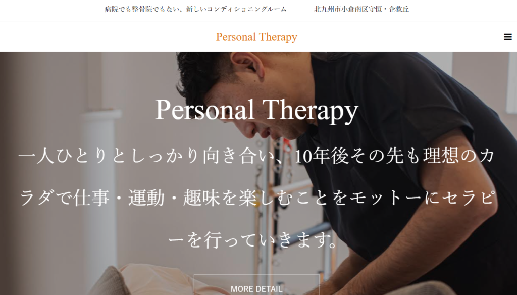 Personal Therapyは、北九州市小倉南区の住宅街にある、病院でも整骨院でもない新しいスタイルのコンディショニングルームです。