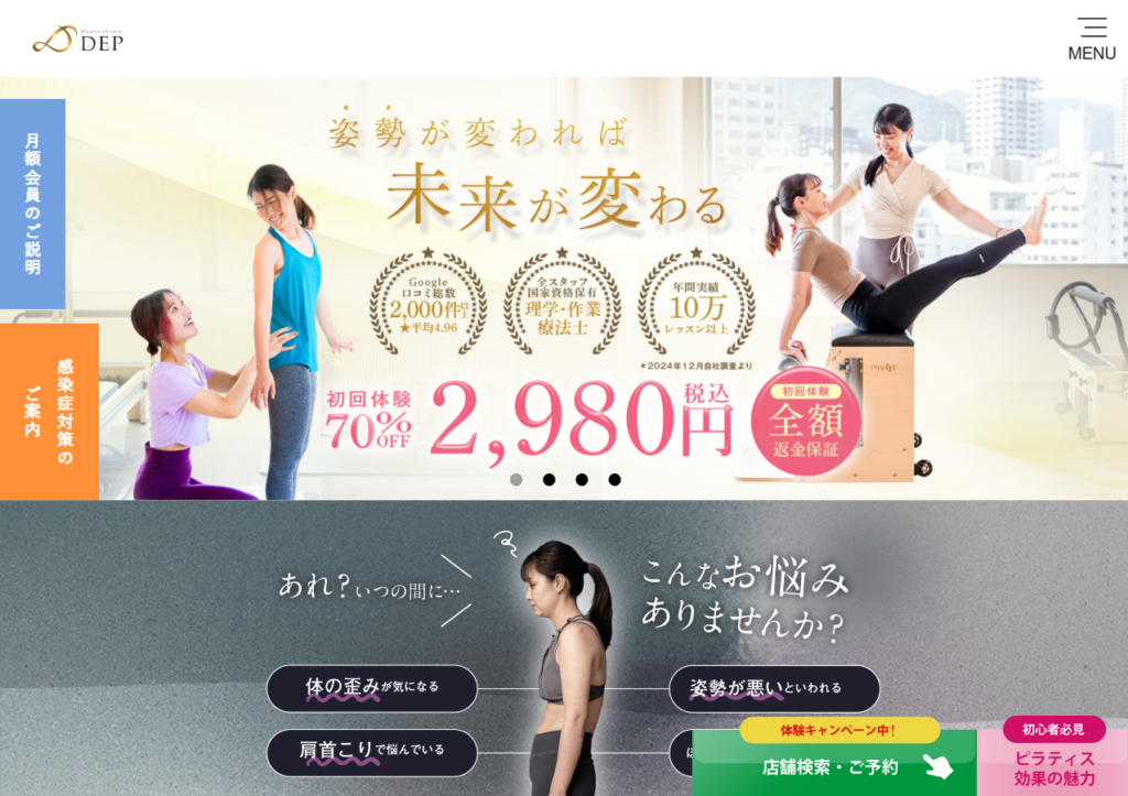ピラティススタジオDEP 新潟店の公式サイトで、詳細をご確認ください!