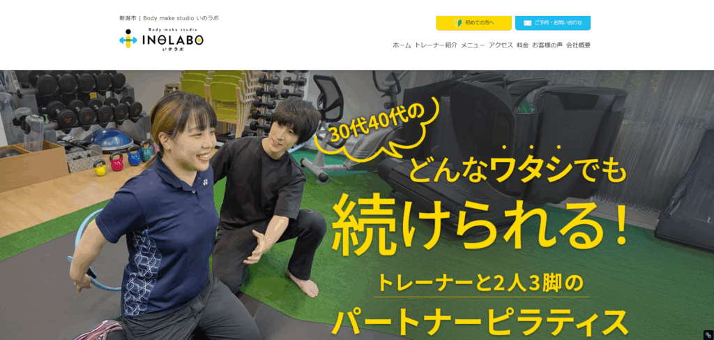 Body make studio いのラボ 西蒲区本店西蒲区井随817パーソナルピラティス12回:108,000円(キャンペーン価格75,600円)パーソナル・マットピラティス・駐車場完備